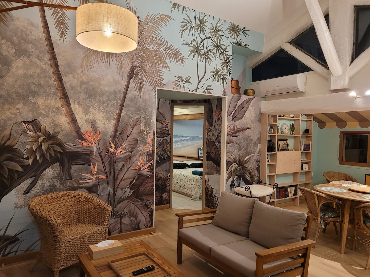 Capanna all'interno di una tenuta alberata Mont St Clair, con una terrazza con vista sulla città, il porto e il mare al riparo dagli sguardi in 2 spazi privati collegati da una scala esterna. Livello inferiore chiuso: Camera 12mq con letto 160, servizi igienici Livello superiore: bagno con doccia, cucina estiva di 6mq, aperta su una terrazza di 8mq con tavolo Lavanderia in comune con lavatrice e asciugatrice Accesso alla piscina collettiva (non riscaldata) dalle 09:00 alle 19:00. Parcheggio gratuito in loco per 1 veicolo