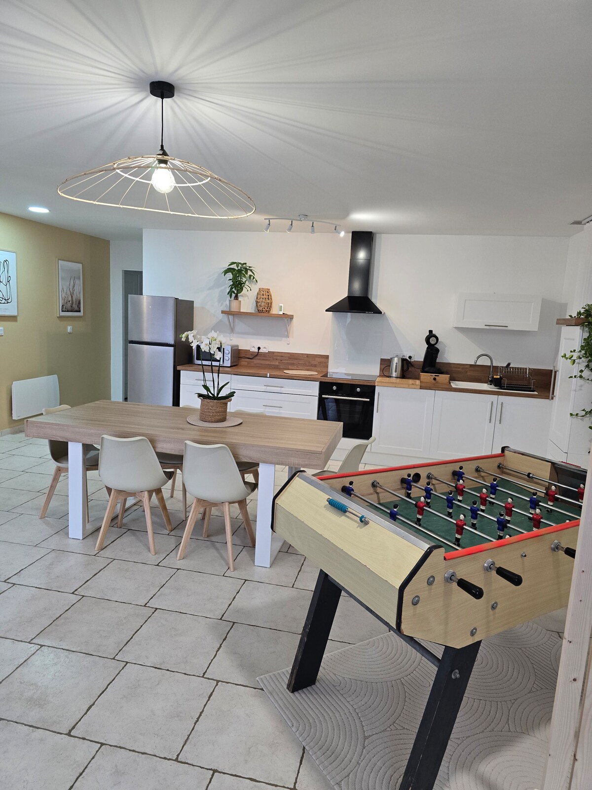 Situata in una zona tranquilla, questa casa offre tutti i comfort necessari per sentirsi come a casa propria. La cucina a vista è completamente attrezzata (piano cottura, frigorifero, forno, macchina per il caffè senseo, forno a microonde). Si affaccia su un accogliente soggiorno con TV e divano. Il bagno è funzionale con doccia, lavabo, servizi igienici e lavatrice La camera è spaziosa con un letto matrimoniale 160x200. Un ufficio con Wifi ti permette di lavorare da remoto in tutta comodità Biancheria fornita Parcheggio privato