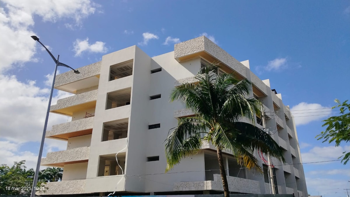 Rifugiati nel nostro lussuoso appartamento con 2 camere da letto nel cuore di Cozumel! Con splendide terrazze, una zona giorno moderna e servizi di alta qualità, questo appartamento è il luogo perfetto per rilassarsi e godersi la tranquillità dell'isola. Rilassati davanti alla TV a schermo piatto, cena all'elegante tavolo da sei persone o prepara i tuoi pasti nella cucina completamente attrezzata. Le nostre accoglienti camere da letto vantano letti matrimoniali, terrazze private e lenzuola di lusso per dormire sonni tranquilli.
