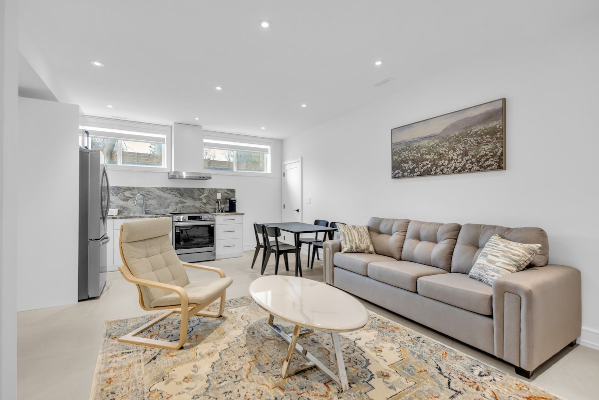 Ti diamo il benvenuto nel nostro alloggio moderno e completamente attrezzato, che dispone di un ampio cortile. Che tu stia viaggiando per lavoro o per piacere, la nostra unità è la base perfetta. La posizione offre un comodo accesso a tutto, a soli 10 minuti dal centro di Toronto e dall'aeroporto, a 5 minuti da Lakeshore Blvd, Port Credit e dalla stazione GO e a pochi passi dai mezzi pubblici. Inoltre, troverai una miriade di ristoranti locali, negozi, un sentiero panoramico e bellissimi parchi nei dintorni.
