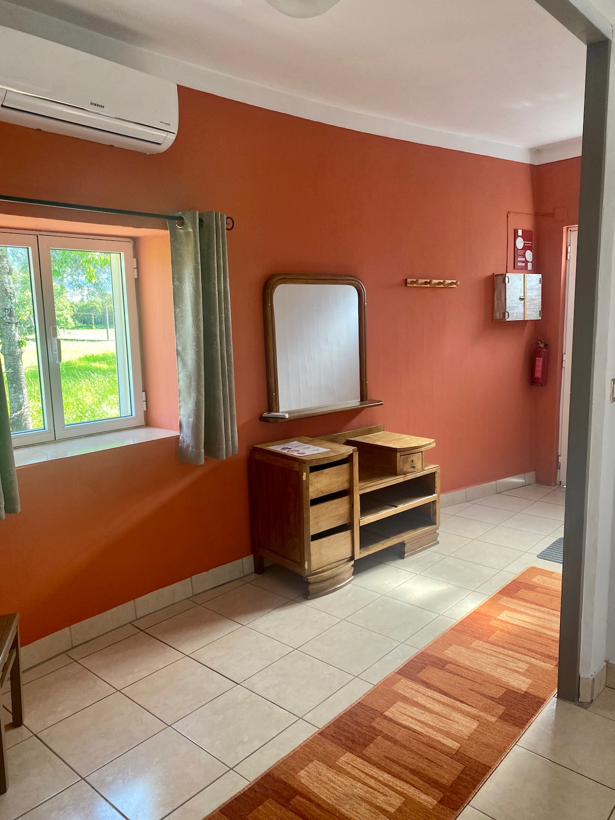Piccolo monolocale con camera da letto con letto matrimoniale e angolo cottura attrezzato nello stesso spazio comune e bagno. Terrazza con vista sul giardino biologico e sulla montagna, con salotto e zona barbecue. Molto gentile, è l'ideale per chi cerca la massima tranquillità e privacy.