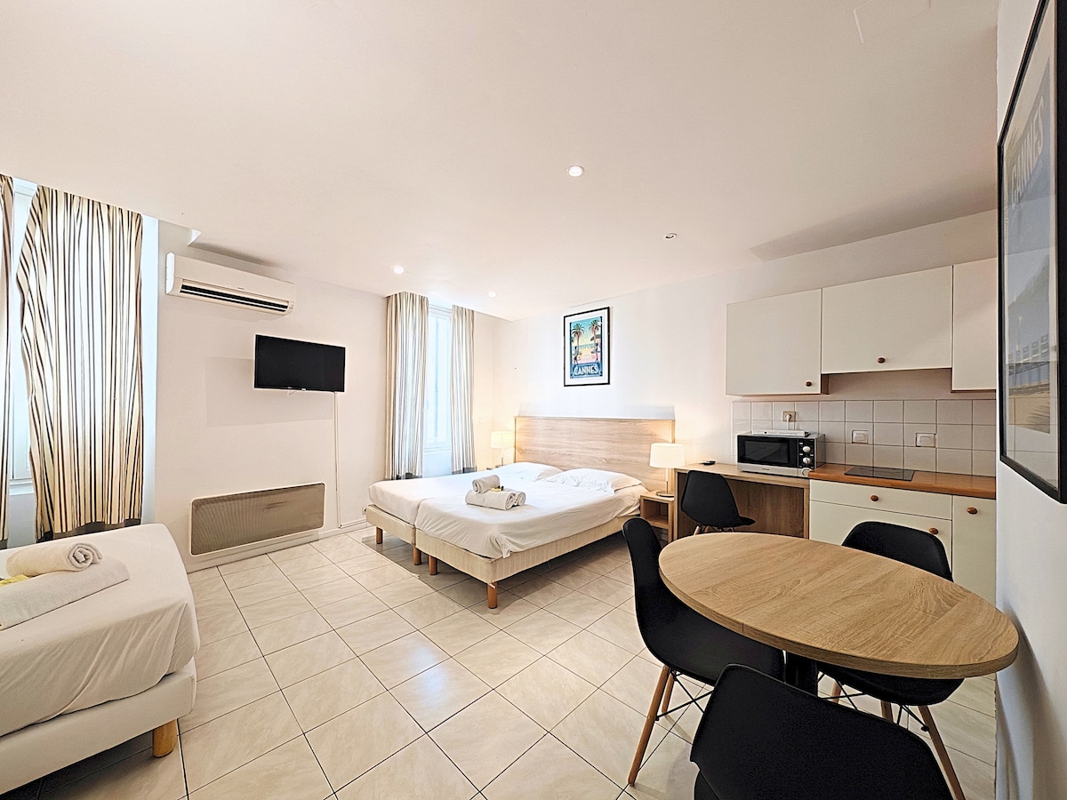 Benvenuti al monolocale PALM! Posizione eccezionale, a 80 m dal palazzo dei festival e dalle spiagge della Croisette, all'angolo con rue d'Antibes. Appartamento confortevole, cucina attrezzata, lavatrice, ARIA CONDIZIONATA nuova, TV, WiFi gratuito. Bagno completamente ristrutturato, Letto "queen size" + divano letto