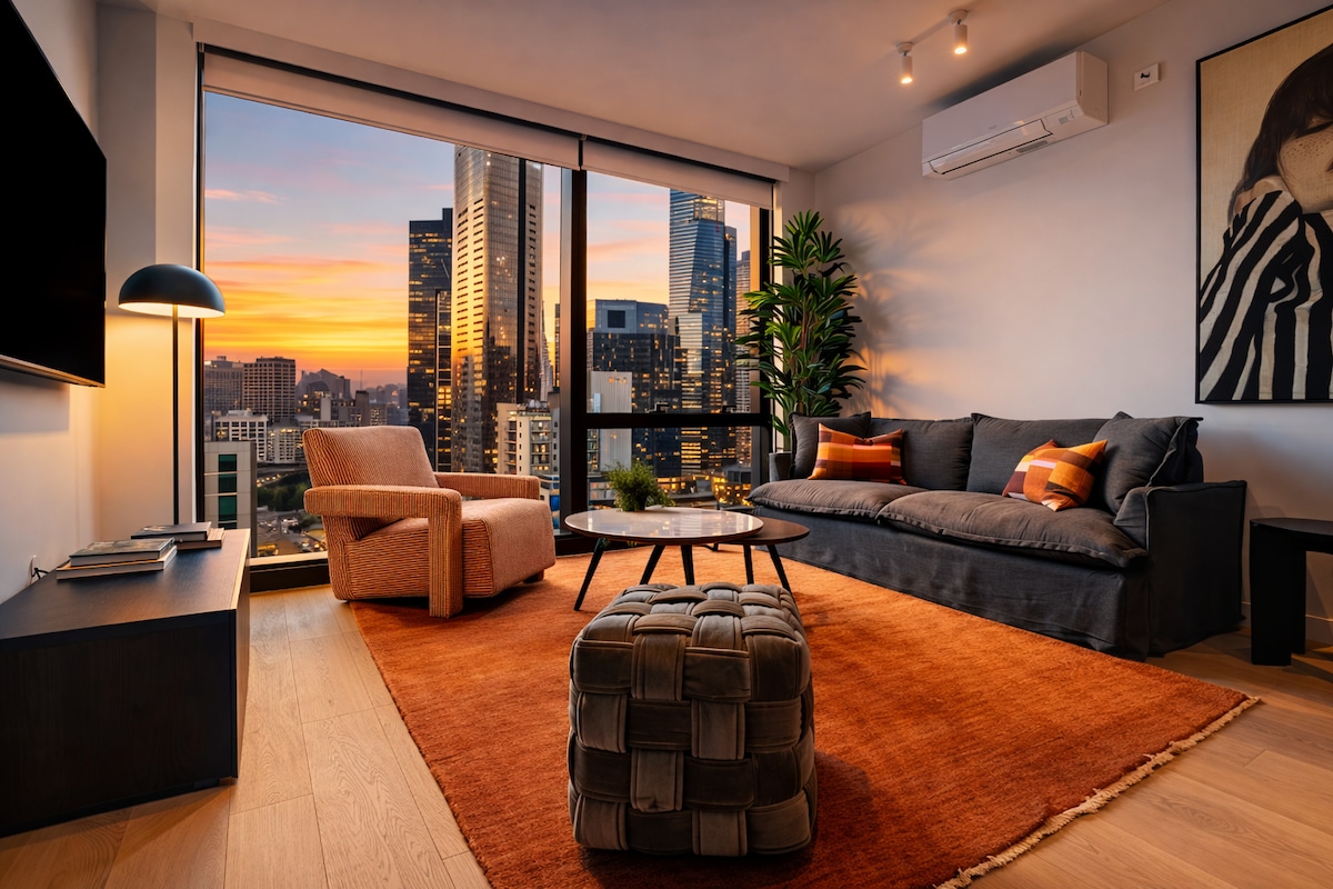 A pochi passi dal casinò Crown e dalle rive di Southbank lungo il fiume Yarra, questo appartamento con 2 letti è perfetto per il tuo divertimento in tranquillità. Arroccata in alto con vista panoramica sul CBD e sulla baia di Port Philip, questa casa di lusso è ideale per un weekend in città senza la frenesia del caos del centro città. A pochi passi dal South Melbourne Market, dai Giardini Botanici e dal DFO, o a pochi minuti dalla zona del tram gratuito. Questo appartamento dispone di TV da 75", cucina completamente attrezzata, aria condizionata, wifi gratuito e parcheggio gratuito!