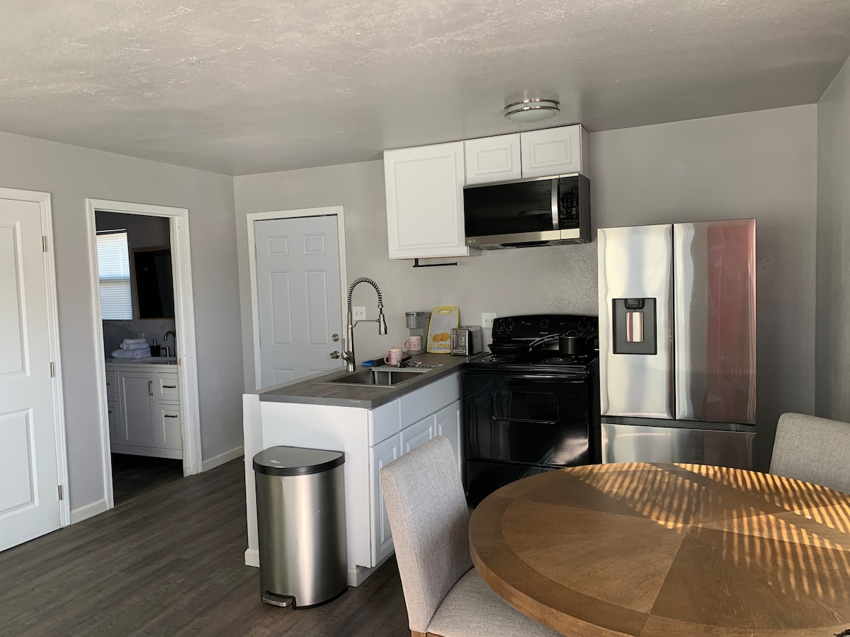 Goditi il tranquillo patio posteriore, ADATTO AGLI ANIMALI DOMESTICI. Goditi un braciere a gas o una cena sulla griglia. Rilassati in questo spazio tranquillo in posizione centrale nel centro storico di Modesto. Questo nuovo monolocale con elettrodomestici nuovi si trova a pochi passi dal Gallo Center for the Arts, dal McHenry Mansion Museum, dal Brendan Movie Theater e dallo State Theatre, e nei fine settimana potrai goderti tutta la vita notturna. Anche Modesto si diverte a fare un giro nei fine settimana.