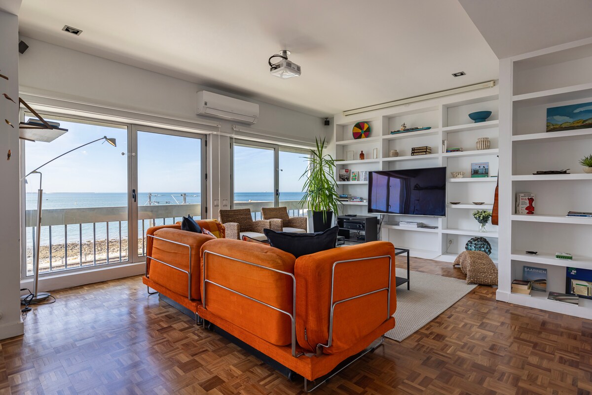 Beautiful & Unique location 98 m2 penthouse flat in Algés, 10m Lisbon 15m beach, facing south plenty of sunshine amazing views of the Tagus river & Atlantic Ocean stay on this very comfortable & special home cozy interiors & big exterior terrace to enjoy the warm sun and sea air ! Apartamento 98 m2 em Algés confortável soalheiro 10m Lisboa 15m praia desfrute grande terraço com chuveiro churrasqueira espaço lounge e refeições aprecie brisa marítima e vista deslumbrante sobre Tejo e o Atlântico !