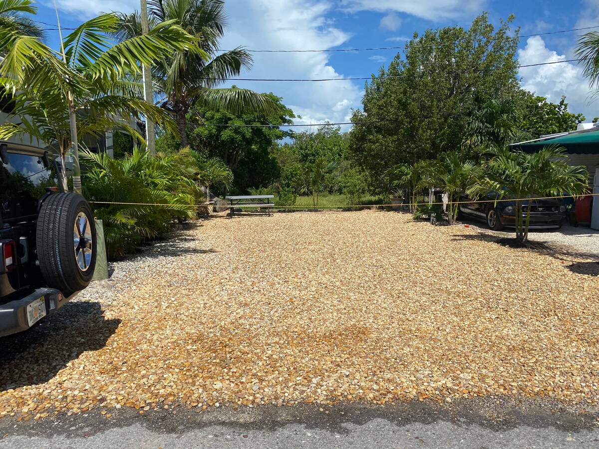 Goditi il tuo soggiorno nelle chiavi di Breezy Pines RV Estates a Big Pine Key. A soli 30 miglia a nord di Key West, a 7 miglia a sud della spiaggia di Bahia Honda State Park e a 25 miglia a sud di Marathon. Nelle vicinanze si trovano ristoranti, supermercati, caffetterie, ecc. Goditi la natura in luoghi come il Blue Hole e il Pine Channel Park. Si tratta di un rimorchio a 5 ruote con un letto a due piazze nella camera da letto e un futon completo nel soggiorno. Un posto auto con zona pranzo e patio privati all'aperto.