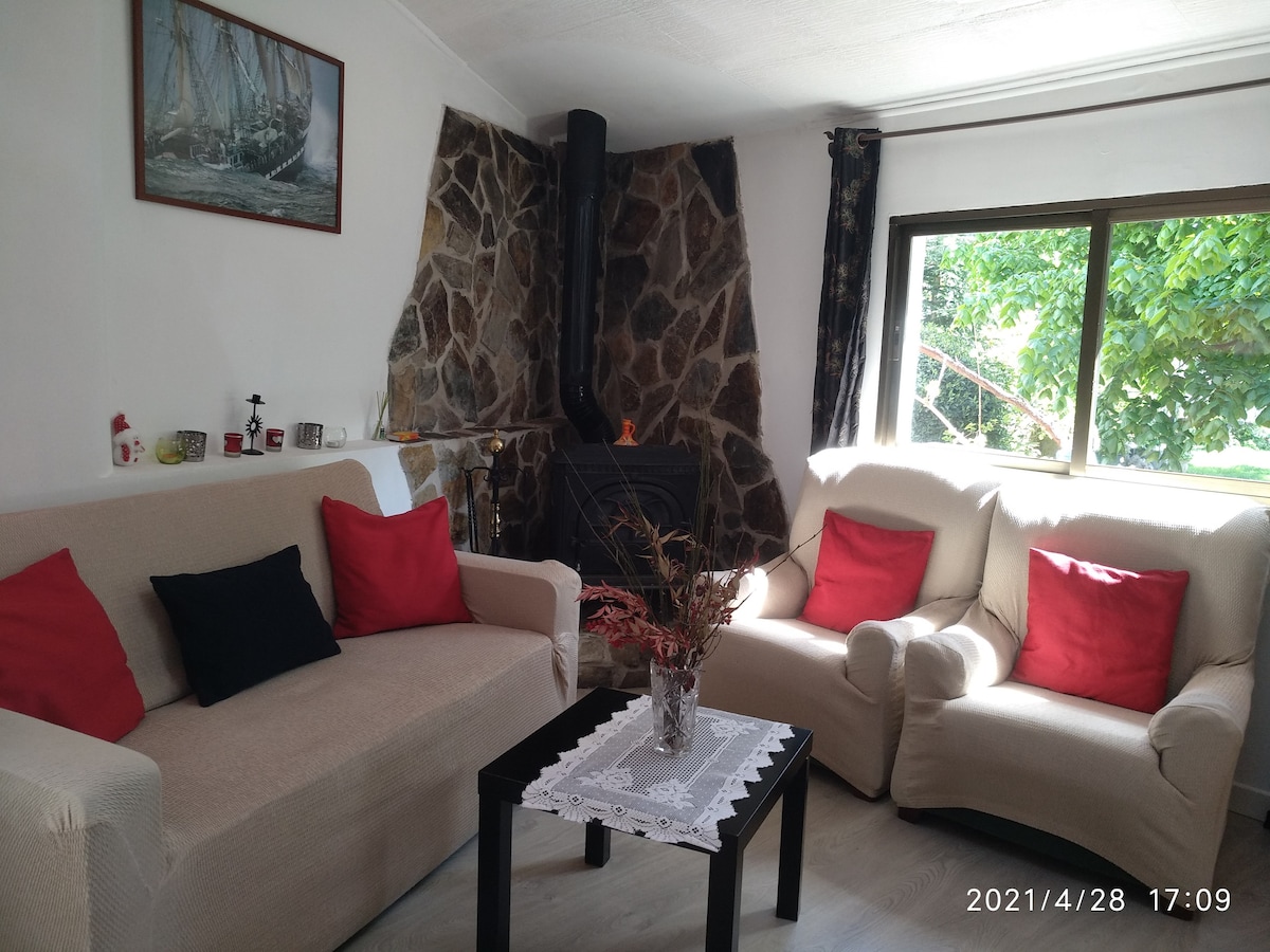 Villetta bifamiliare con vista mozzafiato. Ampio giardino con barbecue e tre camere da letto con due bagni completi e un WC. Lavatrice, lavastoviglie, piscina comunitaria (SOLO LUGLIO E AGOSTO IN ORARIO DI SOCCORSO) e pergola in giardino. Per coloro che vogliono staccare la spina in montagna. Tutto è nuovo e dispone di tutti i servizi; percorsi nelle vicinanze e ambiente totalmente rurale. Ascolta il fiume dal letto e goditi una passeggiata lungo la vecchia linea ferroviaria abbandonata Non è consentito fumare