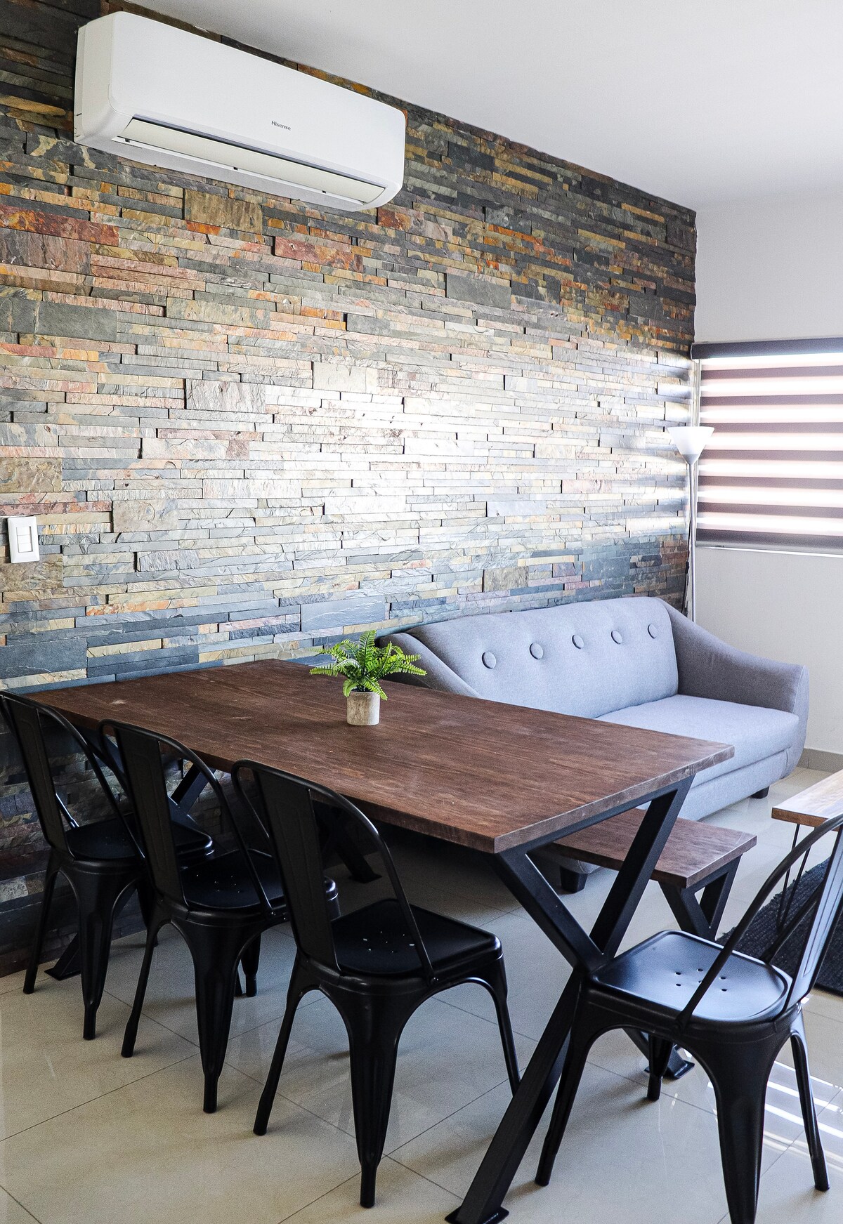 Alloggio di fronte al Giardino Botanico di Culiacán, ideale per passeggiare, meditare o fare jogging. Vicino alla UAS, agli ospedali, al Malecón e a ristoranti come Café Miró e Villa Unión. A 5 minuti dal Forum. Edificio iconico della colonia di Chapultepec. Stile minimalista, cucina Smeg attrezzata, TV Samsung Frame da 65"e audio Bose. Comfort, posizione e stile in un unico luogo. 1 letto matrimoniale e 1 divano letto