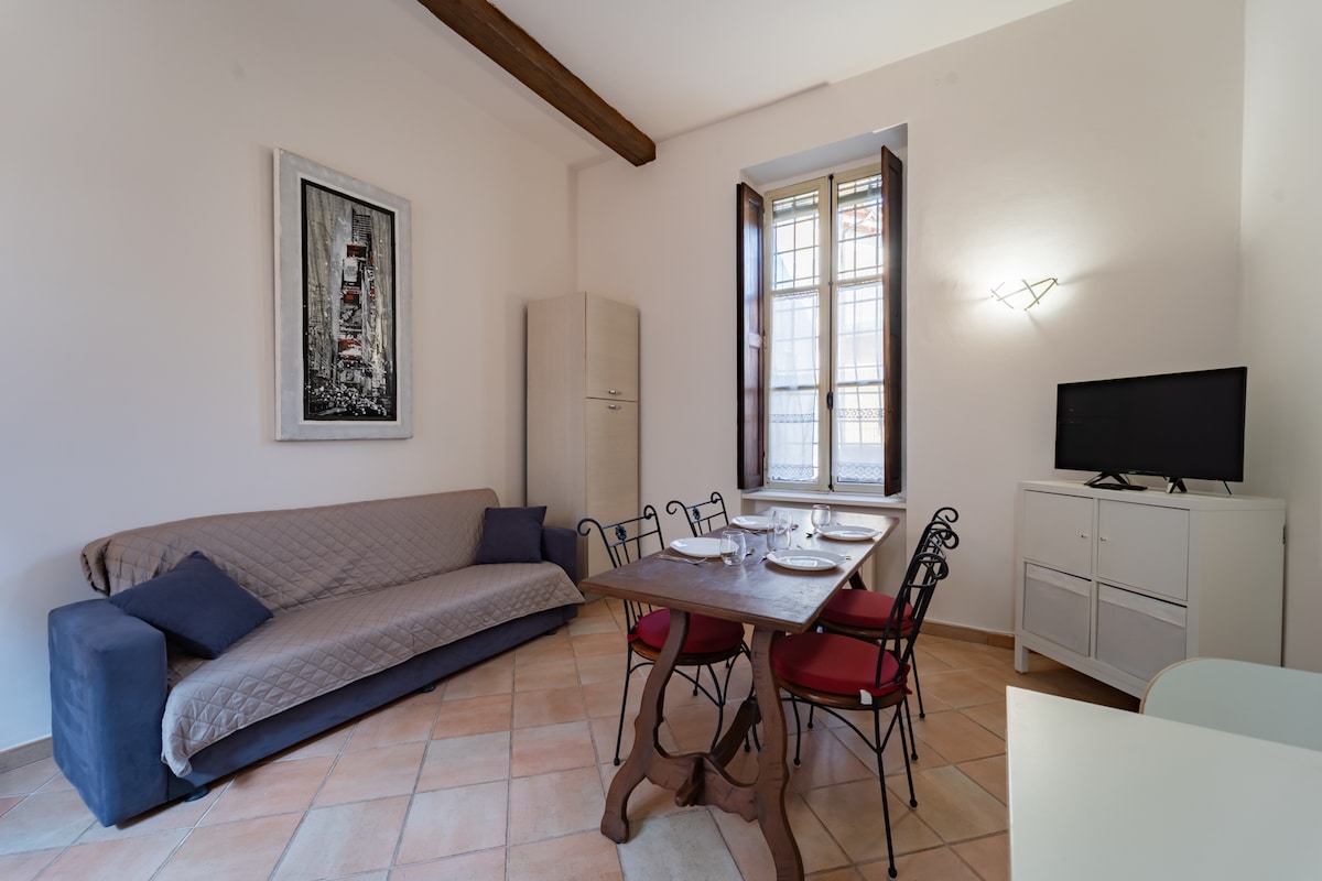 Svegliarsi con una vista sulle mura medievali. Il fascino del passato di un suggestivo muro di mattoni antichi. Questo è ciò che ti aspetta nell’appartamento Nespolo, ideale per coppie che viaggiano con un bambino piccolo o per una fuga romantica solo in due. Cucina abitabile con balcone e con divano letto, una camera da letto matrimoniale con patio esterno e un bagno. L’appartamento si trova al primo piano, con ascensore e ha accesso a un'area verde comune con vista panoramica, tavoli e sedie.
