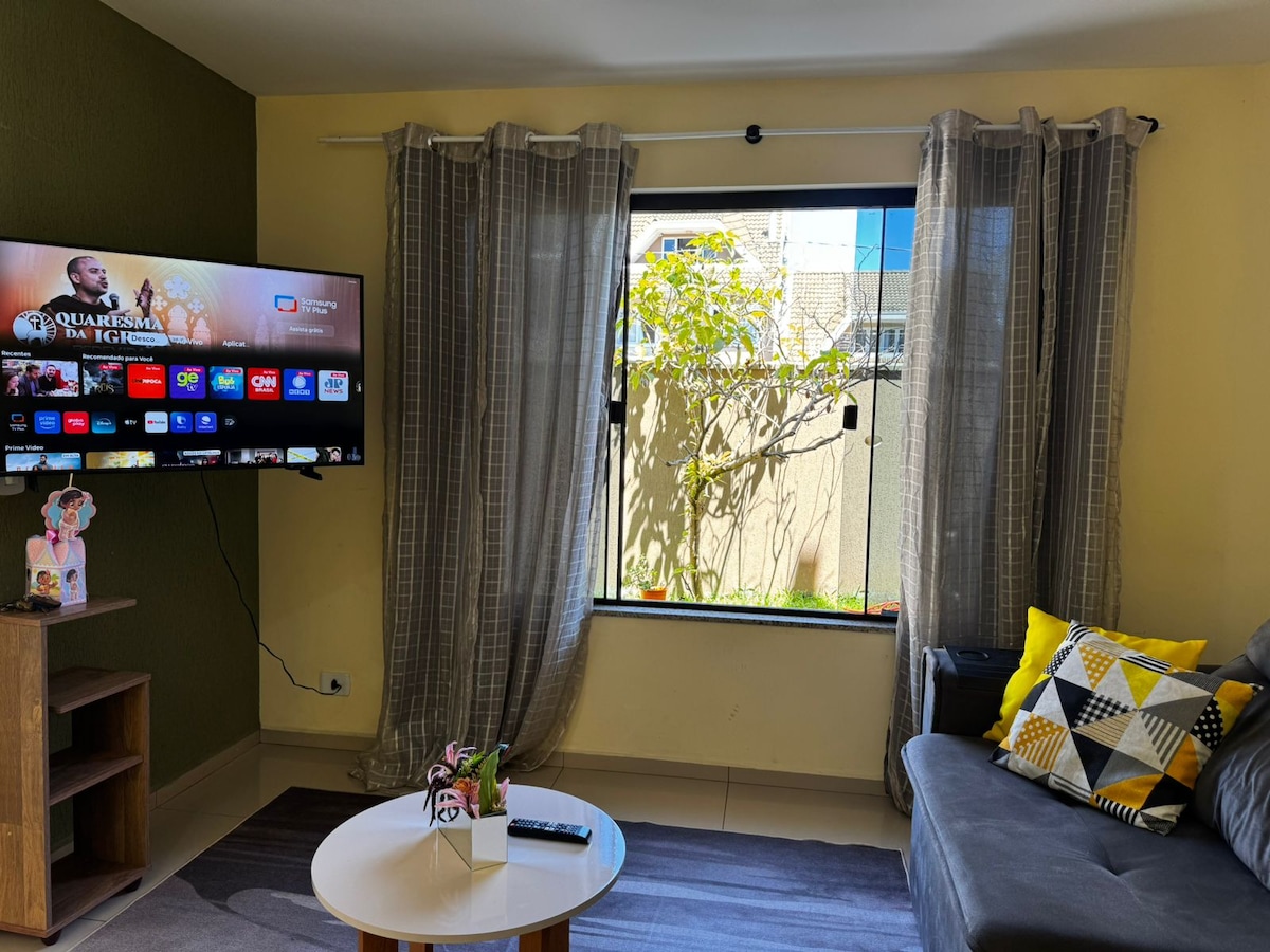 Possiamo ospitare fino a 10 persone, con posto auto coperto per due veicoli, connessione internet a banda larga in fibra ottica e wi-fi. Dotata di Smart TV LG da 49", TV via cavo, inclusi canali HBO e Telecine, e Sound Bar JBL con Bluetooth. Stile e personalità unici in un ampio spazio con giardini accoglienti, l'atmosfera è di totale tranquillità e privacy a soli 15 minuti dal centro di Curitiba. Se necessario, possiamo fornire l'accesso a un bagno esterno aggiuntivo.