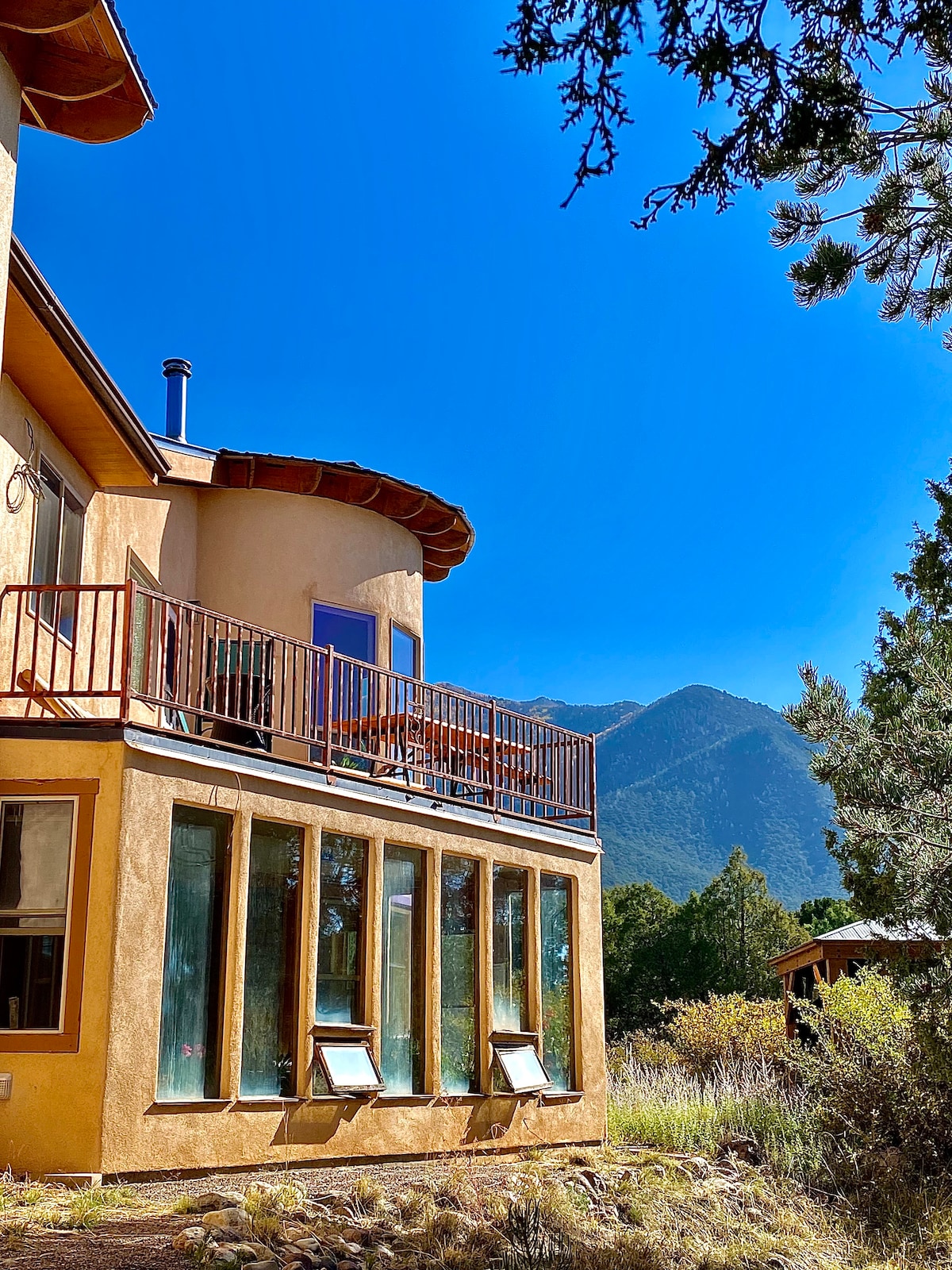 Scopri Terra Cottage, una splendida Earthship in un ambiente sereno e ispirato. Questa oasi nel deserto di 2 ettari, spaziosa, ecologica e non allacciata alle utenze, presenta pavimenti in pietra e soffitti in legno. Il mondo naturale si fonde perfettamente in questa casa unica. Goditi una cucina completa, una sala da pranzo per 4 persone, un soggiorno e uno spazio di lavoro con internet a 20 Mbps. Accomodati accanto ai caminetti a legna e a propano. Rilassati nel cortile condiviso con vista mozzafiato sulle montagne. A soli 10 minuti da Crestone.