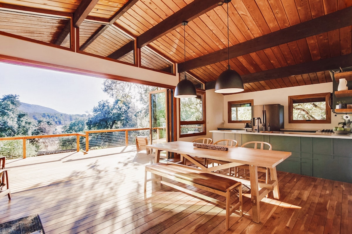Vivi tutte e quattro le stagioni da questa tranquilla pensione collinare, dove ampie vedute e mattinate tranquille dettano il ritmo. Sorseggia il tuo caffè sulla terrazza privata in sequoia, gusta i pasti all'aperto e rilassati sulle sedie a dondolo mentre il sole sorge e tramonta sulle colline. Questo accogliente rifugio è pensato per il riposo, la riflessione e i momenti semplici che permangono a lungo dopo il tuo soggiorno. Progettato per due adulti o viaggiatori solitari.