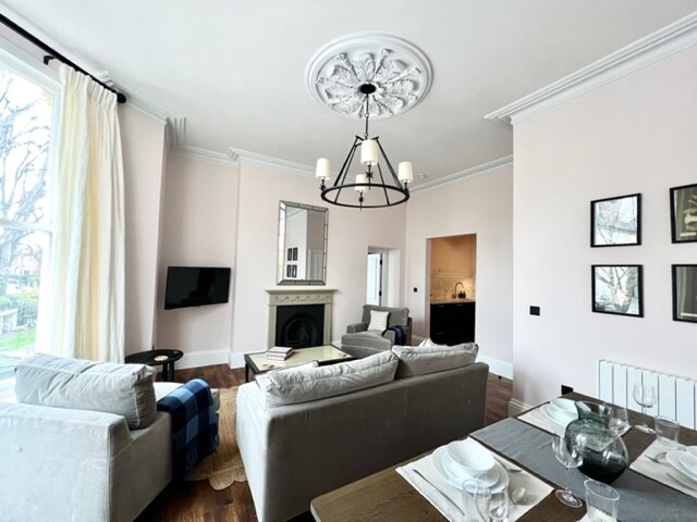 Uno splendido e ampio appartamento d'epoca con una camera da letto e un balcone. Situato in un'area di conservazione con vista su Roath Mill Gardens. A meno di 5 minuti a piedi da bar, ristoranti e caffetterie su Wellfield Road e a 30 minuti a piedi dal centro città. Ristrutturato per il 2023 con una nuova cucina. Goditi: Sky multi-room e 2 smart TV, wifi, macchina da caffè Nespresso, un letto di buona qualità con materasso a molle insacchettate.