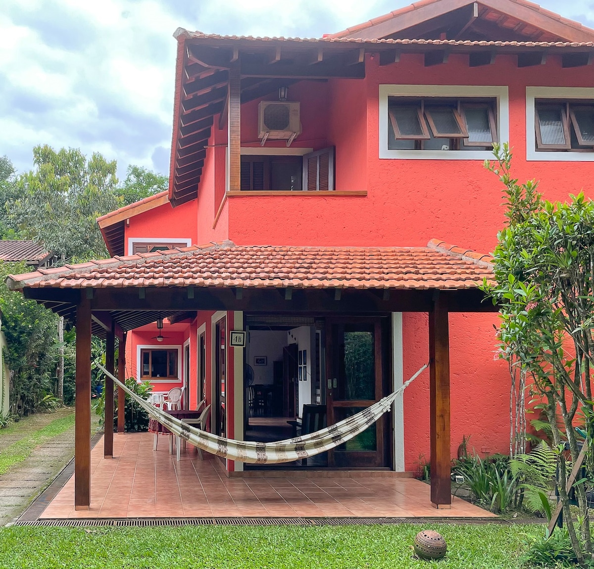 Casa con 4.000 m² di terreno confortevole, vicino alla foresta atlantica. 3 suite, aria condizionata, piscina esclusiva, zona barbecue; il tutto intorno ad un ampio deck in legno che integra gli ambienti. Casa soleggiata di architettura rustica moderna composta essenzialmente da legno e vetro che accentua l'esperienza e il contatto diretto con la natura.
