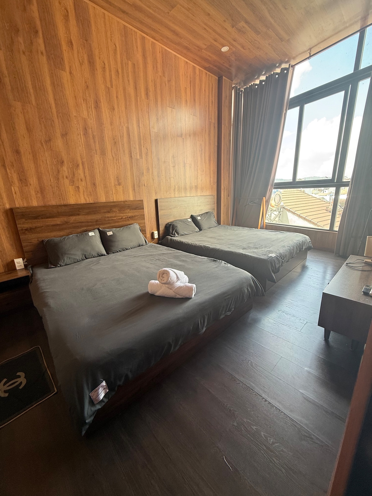 Una casa in legno - standard per 6-8 persone situata proprio nel centro della città di Da Lat 🍀3 camere da letto tutte con finestre e balconi con 5 letti queen size 1,60 m x 2 m, 4 bagni 🍀Soggiorno collegato alla cucina in antico stile Da Lat con divano, frigorifero, forno a microonde, utensili da cucina di base… 🍀1° piano: cucina, soggiorno, 1 bagno, cortile per barbecue e 1 camera da letto con bagno privato 🍀2° piano: 2 camere da letto con bagno privato