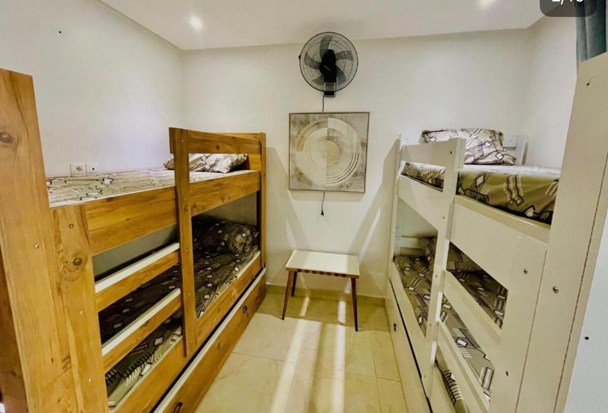 Moderno, confortevole e ultra funzionale. Si trova ai margini di un'incantevole piccola spiaggia, chiamata la "terza spiaggia" dell'isola. Incollata alla scogliera che domina la famosa Destra di Ngor, la SURF HOUSE è il campo base perfetto per godersi le onde dakaroises. Le Almadies o Le Virage sono a 5 minuti di auto, Ouakam a 10 minuti, e la destra di Ngor è… alla fine del giardino! Più precisamente: L'alloggio proposto è un piano giardino di 100 m2.