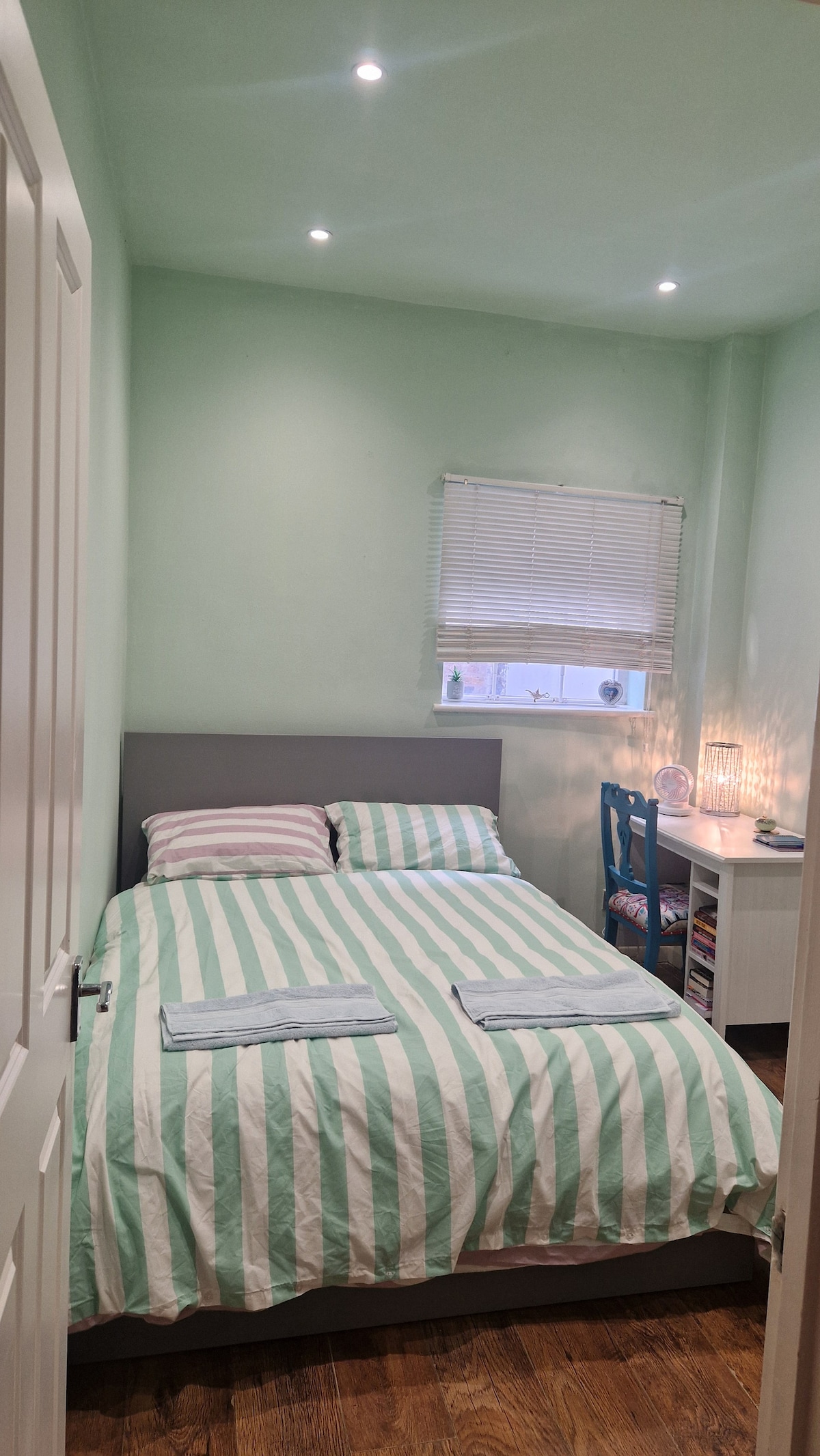 In a vibrant, leafy and safe neighbourhood in Angel, this centrally-located flat offers a peaceful stay. The home was styled by an interior designer. The spacious bedroom has a double bed, wooden floors, wardrobe, desk, chest of drawers, and opens onto an under cover private patio. A Nespresso coffee machine is provided in the room. You will love that the home is nearby the trendy cafes and restaurants on Upper St with Angel tube < 10 mins.