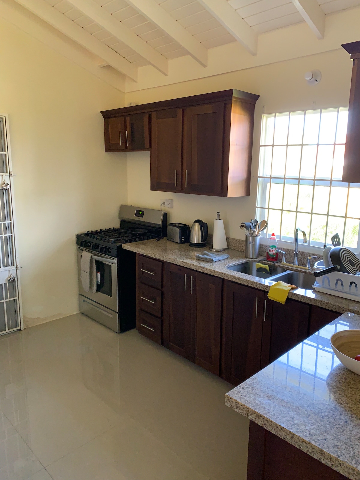 Partecipa a questa vacanza con 2 camere da letto e 1 bagno situata in una zona tranquilla della comunità recintata 24 ore su 24 di Stonebrook Vista. I letti possono essere impostati a tuo piacimento, con molti servizi tra cui aria condizionata in entrambe le camere da letto, scaldabagno a energia solare, approvvigionamento idrico di riserva, Internet ad alta velocità, TV con Netflix, cucina completa e altro ancora. Posizione centrale: 5 minuti da negozi, cibo e spiagge, 25 minuti da Montego Bay, 45 minuti da Ocho Rios. Potrebbe essere disponibile un veicolo con autista opzionale. Sono presi in considerazione gli affitti a breve termine.