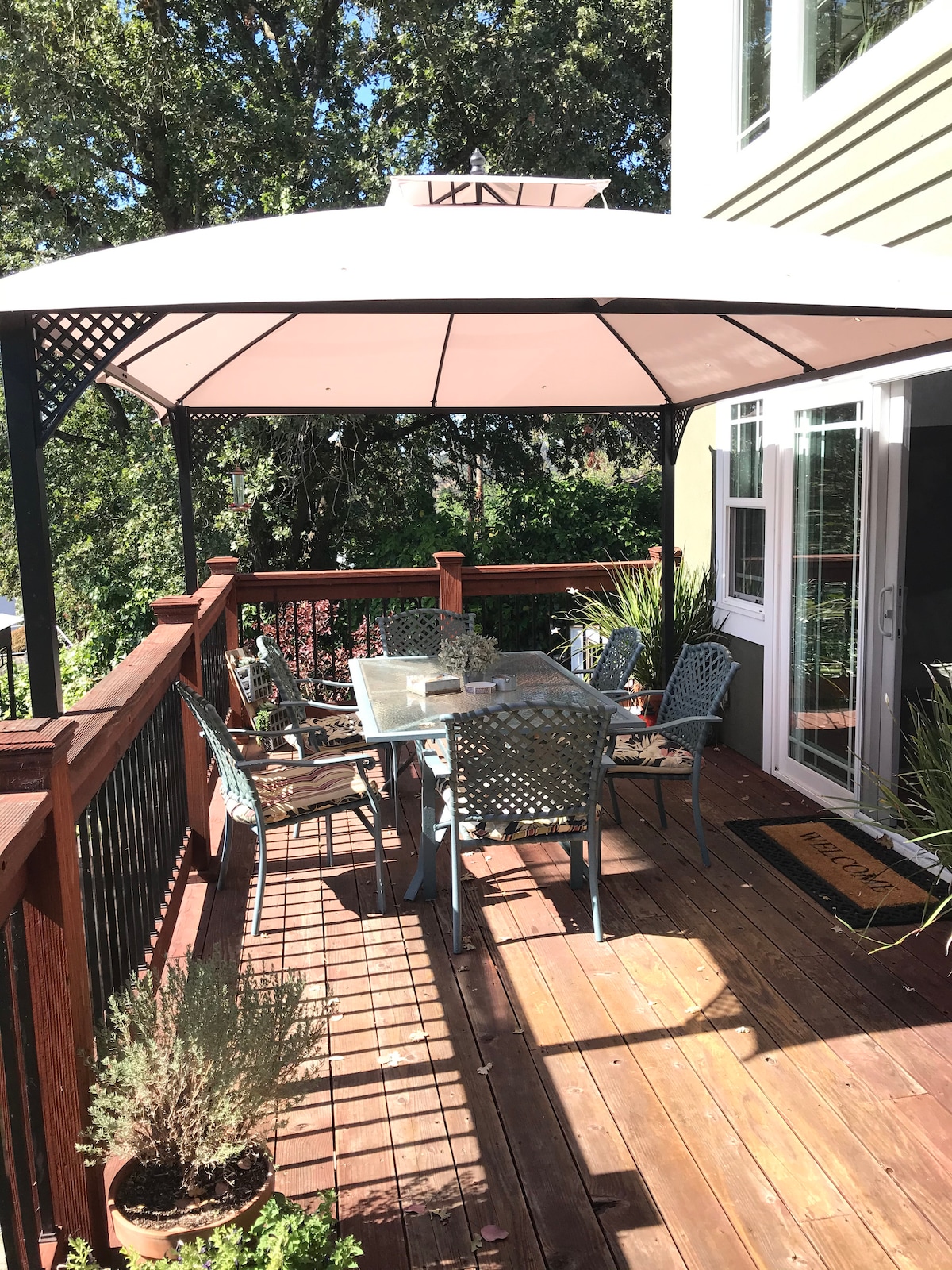 Gorgeous new guest house tucked away from it all and yet close to Downtown Walnut Creek! Walnut Creek is truly a gem of a city right out side San Francisco with cutting-edge restaurants and retail shopping. Staying in our guest house will give you a taste of the country in a organic setting of the yard. This open floor plan is bright and airy, spacious kitchen with large peninsula view for eating and socializing. Beautiful front porch perfect for warm summer nights, with views of the hills.