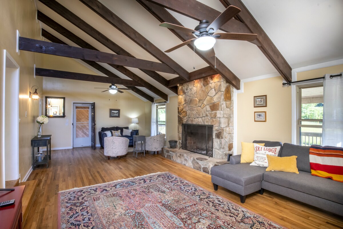 Goditi la tranquillità di una fattoria di 210 acri, situata a 5 miglia dalla stazione sciistica di Winterplace e dalla Weathered Grounds Brewery, e a sole 3 miglia dall'uscita di Ghent! Self check-in su una strada privata lunga mezzo miglio. Dai da mangiare ai pesci con due laghetti pieni di branchie blu, allegria, spigola e pesce gatto. Fai escursioni a piedi o in mountain bike su chilometri di sentieri in tutta la proprietà! Poi vieni a bere una cioccolata calda accanto al caminetto o sorseggia un bicchiere di vino mentre ammiri il tramonto sul portico coperto!