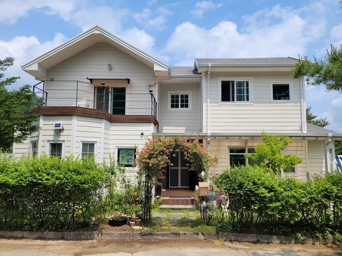 La nostra casa si trova vicino a Taewasang, Yeongwol, provincia di Gangwon, e dista 15 minuti in auto da Cheongryongpo, Jangneung, Grotta di Gosi, Giardino di Dongseo Yeondangwon, Museo delle stelle radiofoniche, Museo della fotografia e Osservatorio di Bieulmaro (dove è possibile prendere una navetta). Si trova a 25 minuti dalla penisola coreana e a 35 minuti dal Youth Moon Y Park. Le famiglie con bambini possono ospitare fino a 4 persone e fino a 3 adulti. È una villa in stile loft e puoi goderti il caminetto interno dall'autunno alla primavera, e puoi sederti nel giardino di fronte all'alloggio e fare un barbecue con un'atmosfera rilassante. Gestiamo due spazi indipendenti. Diamo il benvenuto a chi desidera rilassarsi. * Servizio navetta gratuito * Servizio barbecue gratuito * Legna da ardere disponibile * Il caminetto interno è attivo da ottobre a marzo * Ricarica veicoli elettrici disponibile