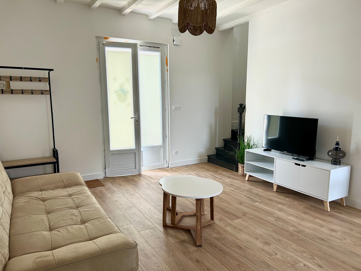 Di passaggio a Dax per le vacanze, una cura o per lavoro? Questa nuova casetta di 2 camere vi aspetta a Dax in un ambiente verdeggiante. Al piano terra, vicino al centro della città, può ospitare da 2 a 4 persone, tutti i comfort, con cucina attrezzata (forno a microonde, forno, lavastoviglie, lavatrice), bagno con doccia e servizi igienici, camera con letto matrimoniale, soggiorno con divano letto, aria condizionata, TV HD, wifi, terrazza. Tranquillo. Parcheggio gratuito. Ottime condizioni. Biancheria da letto e da bagno opzionale (40€).
