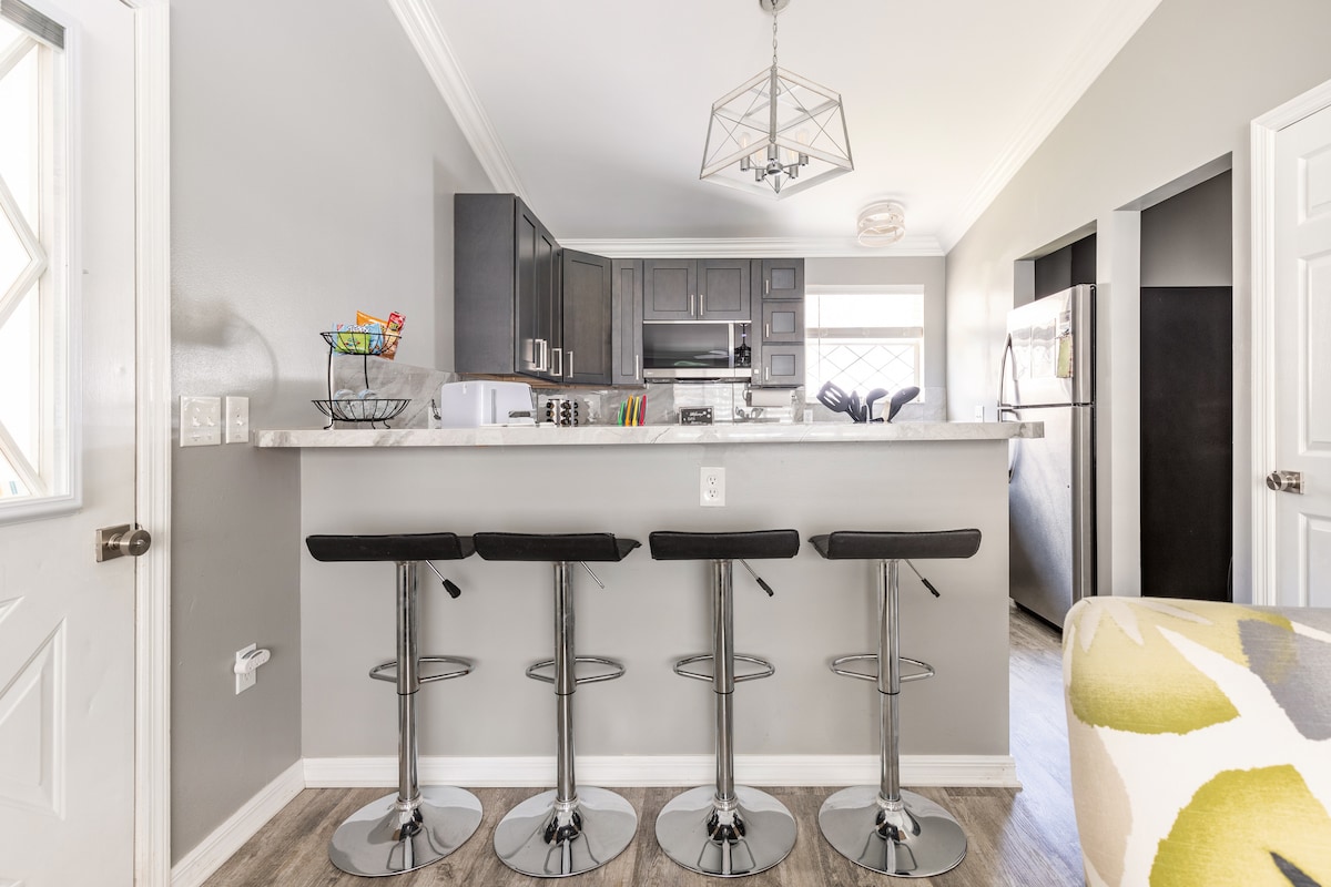 Piscina rilassante a tema tropicale, centro benessere con area barbecue e tiki bar. Posto auto privato custodito vicino alla suite indipendente con accesso tramite codice al cancello. Situata in posizione centrale rispetto a tutte le principali attrazioni ed eventi della zona. A pochi passi da negozi e ristoranti. Nella proprietà possono soggiornare solo gli ospiti registrati; qualsiasi violazione comporterà l'espulsione e la perdita del rimborso. A sole 2 miglia dalla spiaggia. La nostra casa lontano da casa è il luogo perfetto per trovare pace, tranquillità e una breve vacanza.