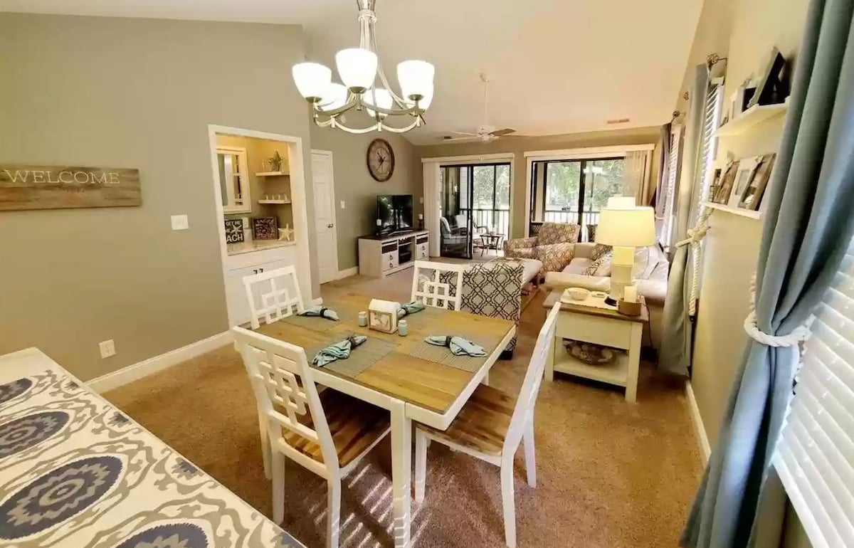 Vieni a goderti il campo da golf appena ristrutturato! Questo appartamento al secondo piano offre un'atmosfera rilassata a pochi passi da campi da golf, pub, piscina e a breve distanza in auto dalla spiaggia. L'appartamento può ospitare 6 persone (1 letto king-size, 2 letti matrimoniali e un divano letto a una piazza e mezza). Rilassati sul portico anteriore in una delle sedie a dondolo o ascolta la pioggia sul portico posteriore. * Non sono ammesse motociclette nell'alloggio.