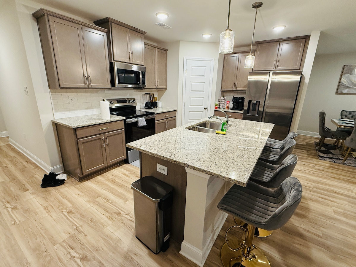 Nuova costruzione 2 letti, 2 bagni, a pochi passi dal centro di Hartselle Entertainment District. Portico anteriore coperto. A 10 minuti a piedi dalla stazione di ricarica per veicoli elettrici del centro. Cucina e bagni in granito, lavatrice e asciugatrice a grandezza naturale. Letto matrimoniale grande in camera matrimoniale con bagno, ampia cabina armadio. Letto matrimoniale nella seconda camera da letto con cabina armadio. Divano letto in soggiorno. WIFI e Netflix inclusi. Passeggia in centro! Fuoco all'aperto! Alcuni animali domestici sono ammessi, chiedi all'host prima di prenotare per eventuali restrizioni.