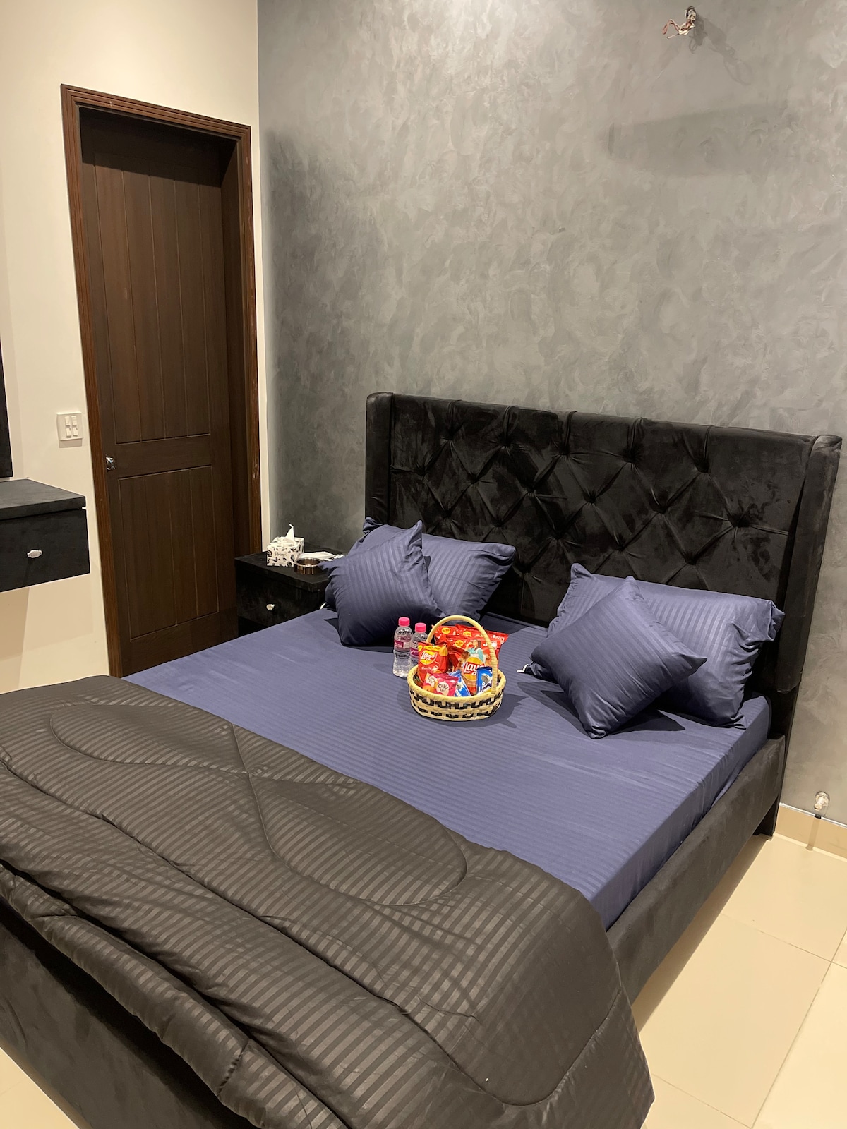 Questo monolocale completo, composto da camera da letto, soggiorno e cucina con zona pranzo, situato al 1° piano di DHA Phase VI Small Bukhari, ha tutto il necessario. Immergiti nel comodo letto matrimoniale, ascolta la musica sul sistema audio JBL o rilassati in soggiorno sul divano di velluto. Con due bagni, non c'è bisogno di aspettare. Prepara un pasto veloce nell'elegante cucina, poi gustalo sotto il bagliore della lampada ad arco accanto a uno splendido dipinto. Inoltre, goditi un cestino di benvenuto, acqua e bevande fredde, tutto offerto da noi.