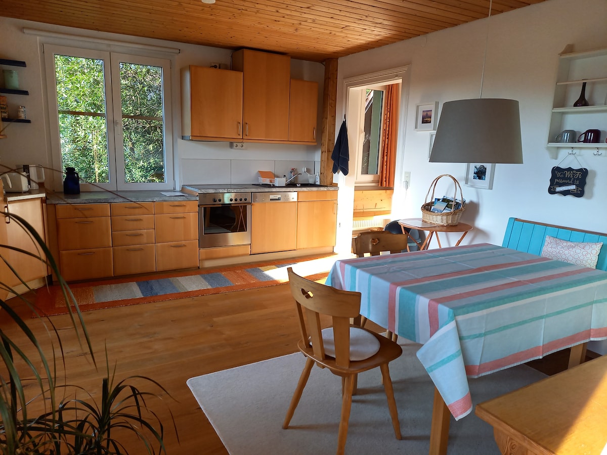 L'appartamento si trova nella mansarda di una bella casa colonica appenzellese di 500 anni, che è stata completamente ristrutturata solo nel giugno 2020. Con grande attenzione ai dettagli è stato creato un appartamento moderno di alto livello, che con il suo fascino e un sacco di legno antico crea un'atmosfera accogliente. L'appartamento offre tutto il necessario per una vacanza rilassante. La cucina è molto ben attrezzata. Il salotto con vista sulle Alpi invita a soffermarsi. Sönd Wöllkomm! gratuito: carta vacanze Appenzello a partire da 3 notti