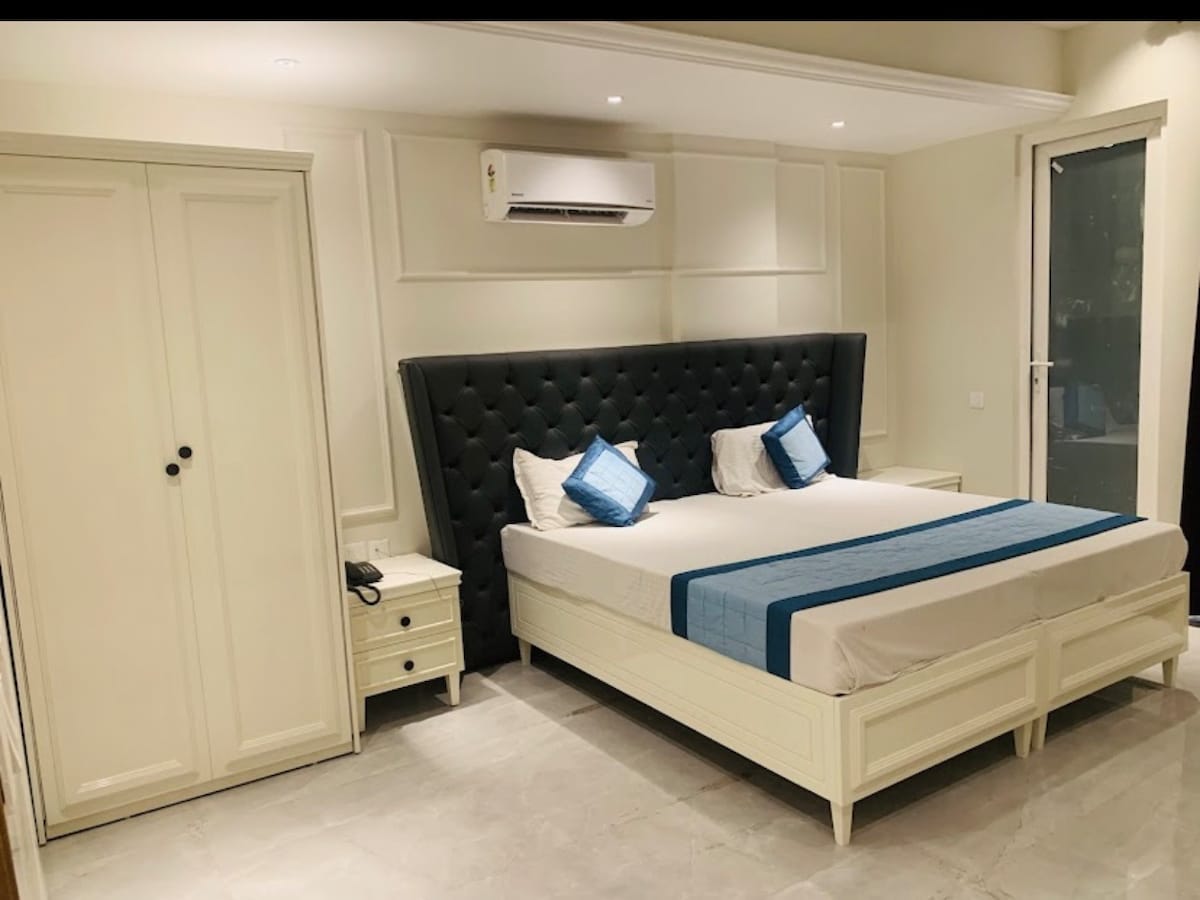 Scopri la nostra camera d'albergo di lusso con balcone nel settore 57, Gurgaon. A pochi minuti dall'Artemis Hospital, da Golf Course Road e dalla metropolitana Sector 54 Chowk, offre un accesso senza intoppi alla città. Perfetta per soggiorni medici, di lavoro e di piacere, la camera combina comfort moderni ed eleganza. Licenza per ospitare cittadini stranieri. Il check-in anticipato sarà soggetto a disponibilità e addebitabili Rs.500, così come il check-out posticipato, con 500₹ aggiunti ogni 3 ore successive.