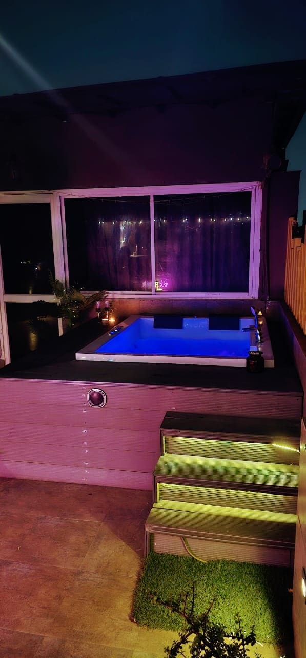 Mind Expanding Space, una camera da letto segreta con piscina idromassaggio - situata nel cuore di South Delhi-Gk1 (LaneNo.1, N-57-Gk1) è una suite con 1 camera da letto con servizi igienici annessi, che si affaccia su una grande vasca idromassaggio, una terrazza con lettini per prendere il sole con doccia esterna. C'è una cucina all'aperto con zona pranzo, barbecue Weber, orti e un prato con un lettino e un'altalena. Dotato di piscina SwimSpa 16'x8' piedi, circondato da pareti in erba per una privacy totale. Superficie totale: 1100 piedi quadrati