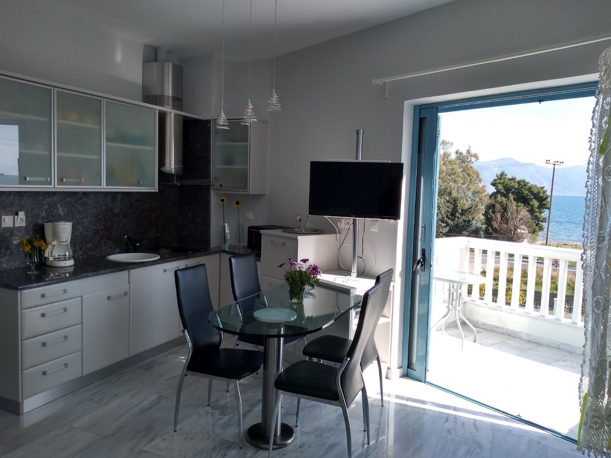 Monolocale arredato con gusto proprio sul lungomare di Itea con un ampio balcone esposto a sud, che ti invitava a rilassarti e goderti la meravigliosa vista sul Mar Mediterraneo. A pochi passi dal tuo portico, una graziosa spiaggia di ciottoli offre una superba qualità dell'acqua, ombrelloni gratuiti e docce pubbliche. Negozi, banche e alcune delle migliori taverne della città sono raggiungibili a piedi. La stazione degli autobus (a 20 minuti dal patrimonio mondiale dell'UNESCO di Delfi e a 3,5 ore da Atene) si trova a pochi passi di distanza.