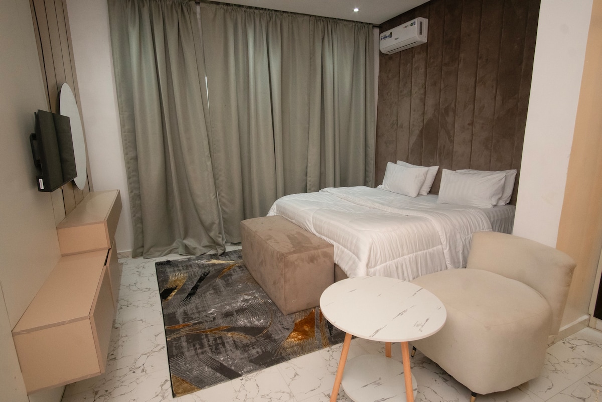 Signature Apartments, la destinazione principale di Warri per soggiorni di lusso. Nel cuore della tranquilla DDPA Igbudu Estate, i nostri sei esclusivi appartamenti con 2 camere da letto ridefiniscono il comfort e l'eleganza. Ogni unità è meticolosamente progettata con arredi di alta qualità, Wi-Fi ad alta velocità e cucine gourmet completamente attrezzate, garantendo un'esperienza di soggiorno senza pari. Che tu sia un viaggiatore d'affari in cerca di uno spazio di lavoro raffinato o un turista che desidera un rifugio di lusso, vieni a vivere il lusso.