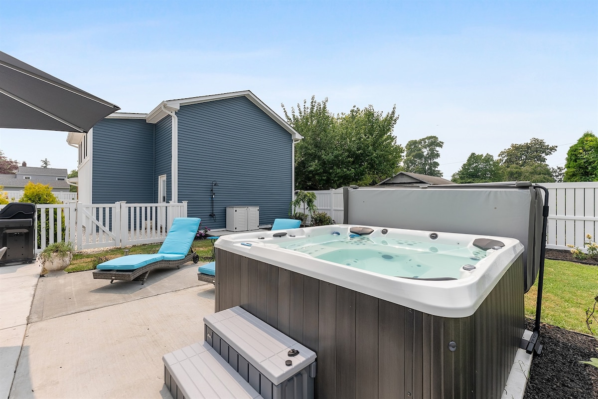 Ti diamo il benvenuto al The Coastal Quad, il primo resort tascabile del New Jersey! Prenoterai un soggiorno in una delle quattro lussuose suite con 1 camera da letto, quindi ogni visita è una nuova avventura! Potrai godere della tua vasca idromassaggio privata, del focolare, del barbecue, del cortile recintato e dell'accesso a un campo da minigolf condiviso sul tetto, a una sala giochi retrò, a una palestra completa con sauna, a un ufficio, a una lavanderia e altro ancora. Situato a pochi passi da una tranquilla spiaggia della baia e a breve distanza in auto da Cape May e Wildwood, questo è il resort più emozionante della costa!