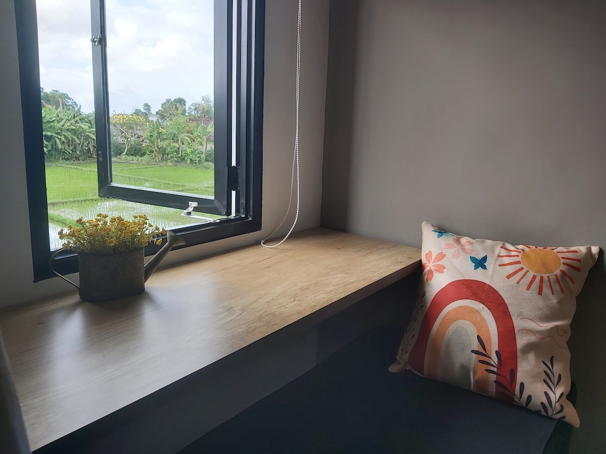 Ti diamo il benvenuto nel tuo rifugio privato a Bali, un monolocale luminoso e stravagante nel cuore di Kerobokan, a soli 5 minuti da Seminyak in scooter. Questo monolocale completamente autonomo al 2° piano offre luce naturale in abbondanza e fascino tropicale. Il letto king-size e l'aria condizionata lo rendono il luogo perfetto per rilassarsi dopo una giornata trascorsa alla scoperta di Bali. Goditi un buon wifi, una zona studio, una cucina privata con tutti gli elettrodomestici e il tuo bagno privato: qui non ci sono spazi condivisi.