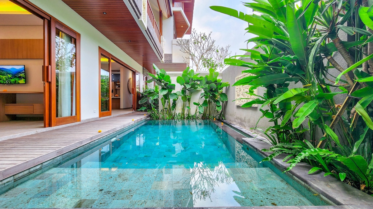 Rifugiati in una romantica villa con una camera da letto nella tranquilla Kerobokan, a pochi minuti dalla vivace Seminyak. Perfetta per coppie o viaggi di nozze, dispone di una piccola piscina privata 3x3 m, un'accogliente zona giorno, una cucina e un bagno privato. Questo rifugio tranquillo, che unisce un design moderno a tocchi locali, è il luogo perfetto per rilassarsi, ritrovarsi e godersi Bali. A soli 9,7 km dall'aeroporto, è un rifugio sereno vicino a spiagge, caffè, boutique e alla vivace vita notturna dell'isola.