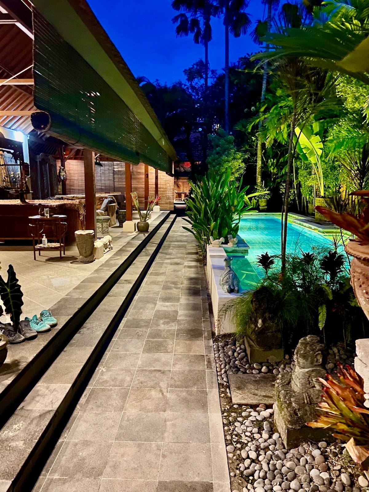 A stylish Balinese compound style with western amenities... Marble polished floors internally and honed marble on the patios and kitchen floors... 3 bedrooms- the master being the largest and quite majestic in size.. The other two bedrooms are separate from the master suite pavillion under one roof.. All bedrooms have ensuites and all bedrooms have air conditioning, all overlook the the sparkling pool...crisp linen, bamboo with Egyptian cotton or 1000 thread Egyptian cotton or cool cotton she's made in ubud... The whole villa compound is for your use enjoyment like your very own home ......with the exception of selected locked cupboards where my personal things are....heaps of videos you may watch if you decide to stay in. My staff Komang and Ketut will be at the villa daily to ensure you are comfortable and happy preparing your breakfasts making beds, tending the garden, pool etc....the villa is meticulously cleaned daily.... Transport to ubud is very easy either by taxi or I can organise a driver to meet you for US$23-25. Getting around ubud is so easy as you don't need a car as my villa is close enough to everything... It is absolutely the best location in ubud... In my street Jalan jembawan is radiantly alive yoga studio, well known and very popular.. Also Ketut arsarna body works yoga studio in Jalan Hanoman a brief walk away... My villa is nestled amongst the community homes and all the families are very friendly... There are day spas close by and many many restaurants... For cultural events you only need to walk through 2 lanes to enjoy the night time kecak fire dance.... The villa ensures privacy for your enjoyment like your very own home ..... My staff Komang and Ketut will be at the villa daily to ensure you are comfortable and happy preparing your breakfasts making beds, tending the garden, pool and cleaning.... For a memorable stay there is no need to look further!!! The whole house including swimming pool is yours Someone will be on-site and available as needed The house is in the heart of Ubud in a very quiet area, yet very close to yoga studios, restaurants, day spas, and busy shopping areas. Everything is within walking distance. Being right in the heart of ubud you can walk nearly everywhere. No need for a car as everything is within five minutes walk so you can feel very safe during the day and during the night. If you want to go on a day trip my staff can organise a driver to take you sightseeing to all the favourite spots if you like.. Nothing is too much trouble for them as they love to assist you Mimpiku means "my dream" and that's what you will feel when you stay here... The minimum stay is 2 nights