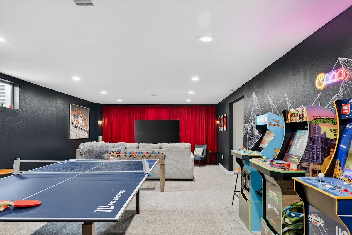 ColorPop BNB offre 242 metri quadrati di spazio moderno e accogliente, 6 camere da letto, 3 bagni e una cucina luminosa rifornita di tutto il necessario! Rilassati nel patio coperto degno di Instagram sotto le lucine dopo una giornata trascorsa in giro. Rilassati e goditi i tuoi film preferiti sullo schermo da 100" 4K del cinema. Sfida i tuoi amici a una partita a biliardo nella sala giochi ricavata dal garage: il vincitore potrà scegliere per primo il letto! Consiglio professionale: i preferiti sono nel rifugio della stanza dei bambini (grande armadio di Harry Potter), ma possono dormire due adulti fino a 177 cm!
