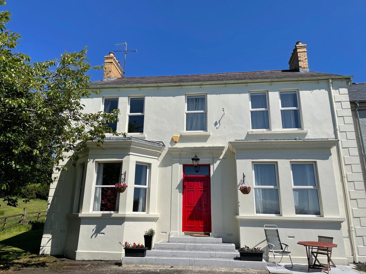 Spettacolare camera da letto al piano terra d'epoca con splendida vista, bagno interno in pietra naturale cabina doccia 1,5 m , specchio da toeletta. pernottamento minimo 3 adulti, 1 letto super king size ed 1 letto singolo. WIFI veloce e gratuito, biancheria da letto in cotone, articoli essenziali, asciugamani, colazione semplice self-service gratuita, parcheggio privato custodito in loco, facile accesso alla sala da pranzo, soggiorno con caminetto, TV a schermo piatta da 55" con canali satellitari digitali e Netflix, a 16 km da Londonderry, 1 ora da Belfast, a 40 metri dalle spiagge, Selciato del Gigante, WAW