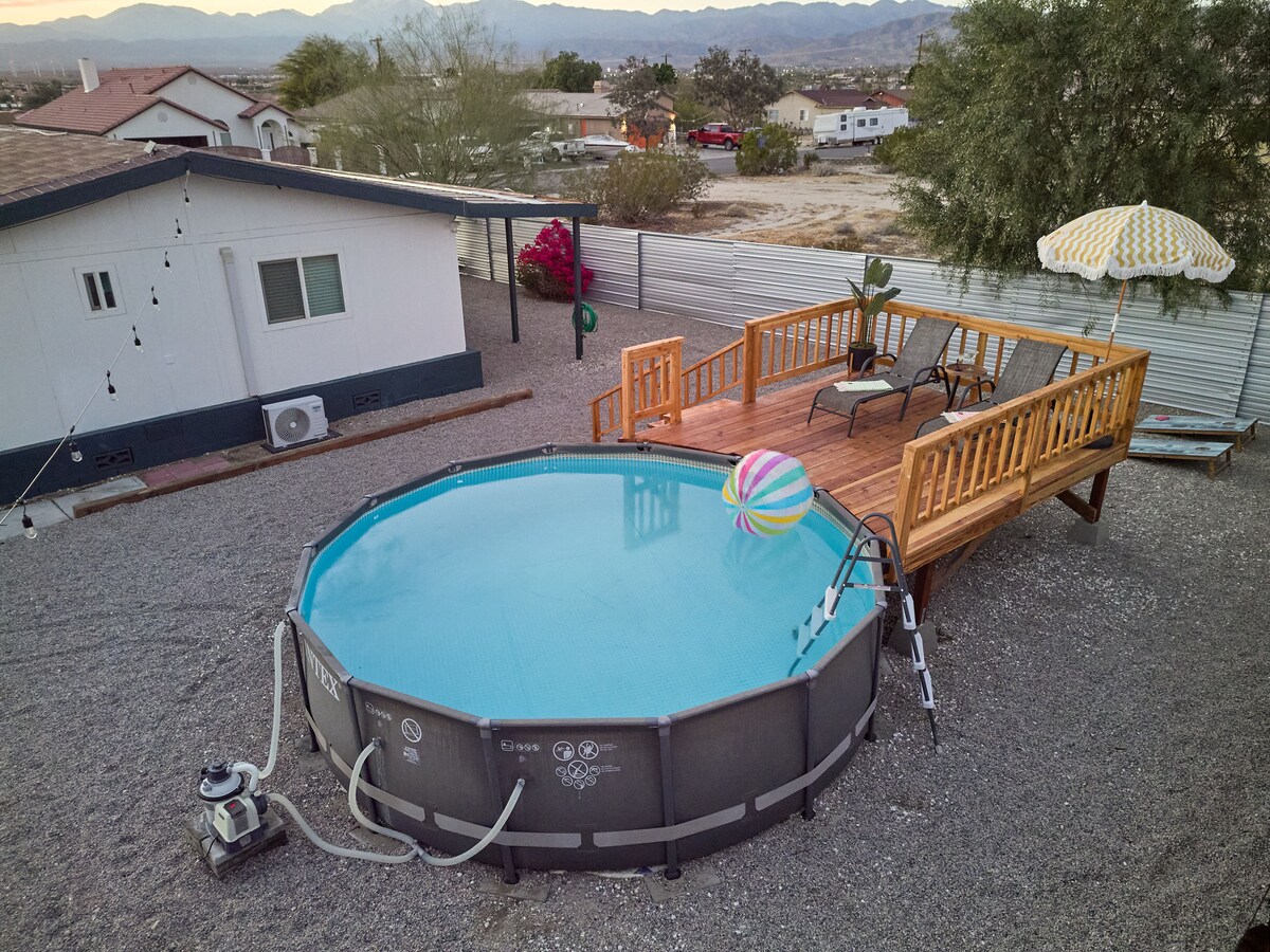 Permesso per affitti a breve termine della contea di Riverside RVC-1637 Immerso nel bel mezzo di un quartiere residenziale di Desert Hot Springs con ampio open space e completamente recintato con posto auto coperto. Per aiutare a combattere il caldo estivo, abbiamo una piscina fuori terra Intex che i nostri ospiti possono utilizzare. La nostra casa con due camere da letto può ospitare comodamente 5 persone. A causa della domanda elevata nei fine settimana di eventi speciali, consentiamo fino a 7 ospiti con un costo aggiuntivo. Ti consigliamo vivamente di portare il tuo materasso gonfiabile, cuscini e coperte.
