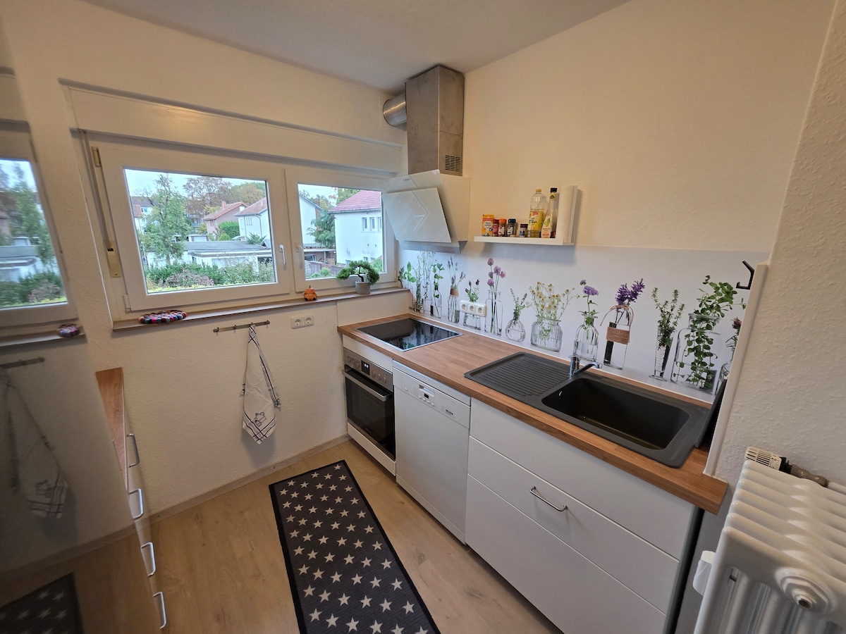 Appartamento soleggiato vicino al centro con terrazza in zona residenziale tranquilla e preferita con parcheggio gratuito. L'appartamento vacanze appena ristrutturato può ospitare fino a 6 persone comodamente con due camere con possibilità di dormire. L'appartamento offre una cucina completamente attrezzata. Adatto per vacanze, escursionisti, alloggi per visitatori, partecipanti a seminari, montatori e artigiani. È possibile anche lavorare: Internet veloce con LAN/WLAN, possibilità di stampare. Benvenuti!!