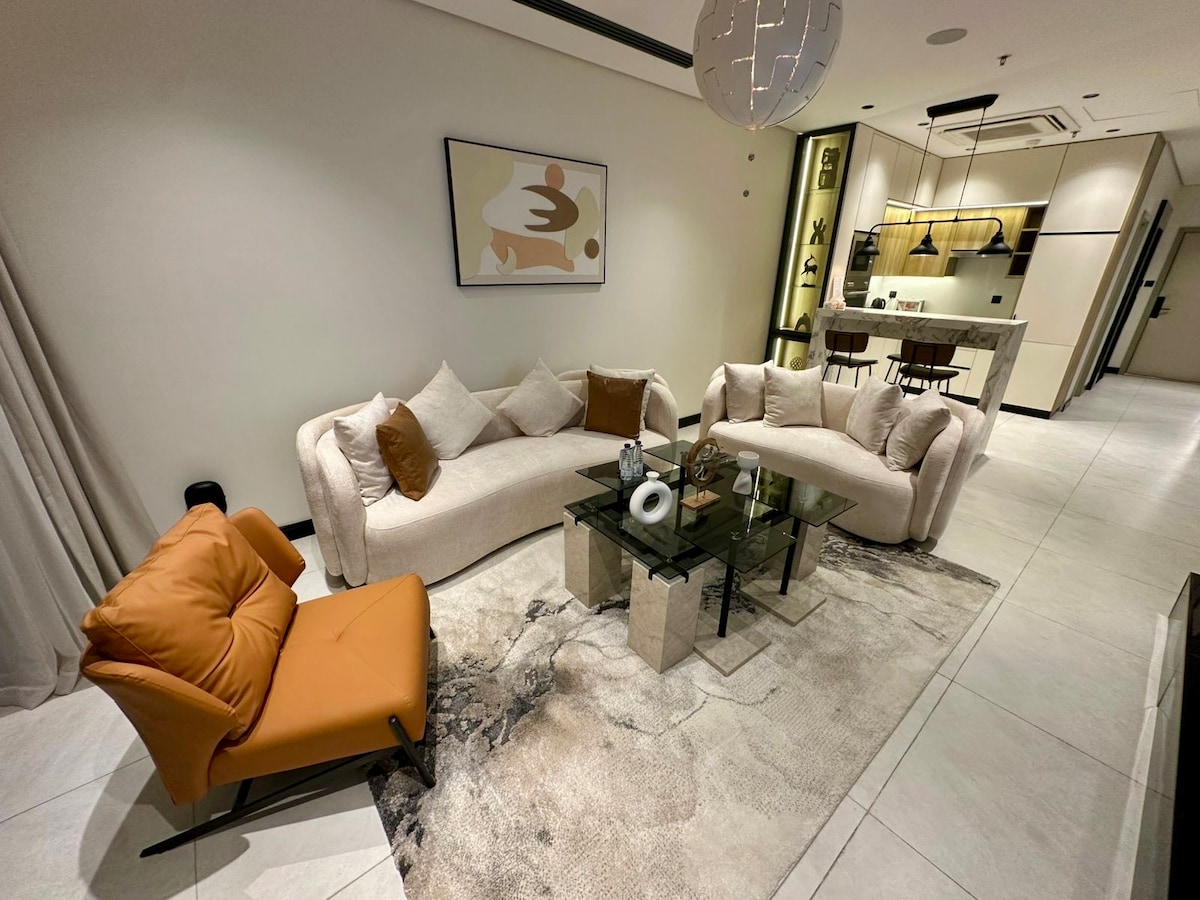 Benvenuti nel nostro appartamento che vi offre un soggiorno eccezionale che supera le vostre aspettative. L'appartamento dispone di una camera da letto dotata dei migliori materassi, oltre a un salotto separato con comodi divani con uno smart screen da 65 pollici per il divertimento (Netflix, Shahid, BeIN) + Wi-Fi. La cucina è completamente attrezzata per soddisfare tutte le tue esigenze. È disponibile un'area esterna con un design rustico e una vista distintiva sul centro finanziario, adatto per eventi e incontri con familiari e amici. L'appartamento è attrezzato per soggiorni brevi e lunghi. La posizione è fantastica nel cuore della città, vicino a luoghi turistici, servizi e ristoranti.