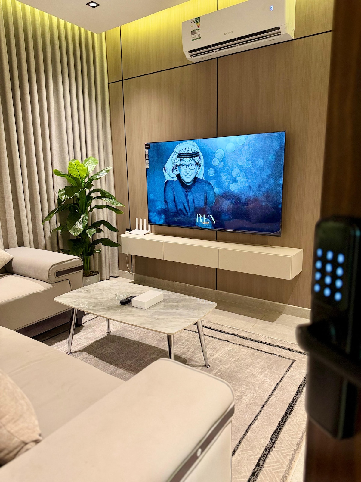 Per tutti gli appassionati di cinema! Goditi un'esperienza speciale nel moderno studio "Movie Night Theme" nel cuore del quartiere di Al Sahafah. Poiché troverai uno schermo da 70 pollici per una piacevole visione sulle tue piattaforme preferite: Netflix, Shahid, Starz On, YouTube e altro ancora, con accesso a Internet 5G.