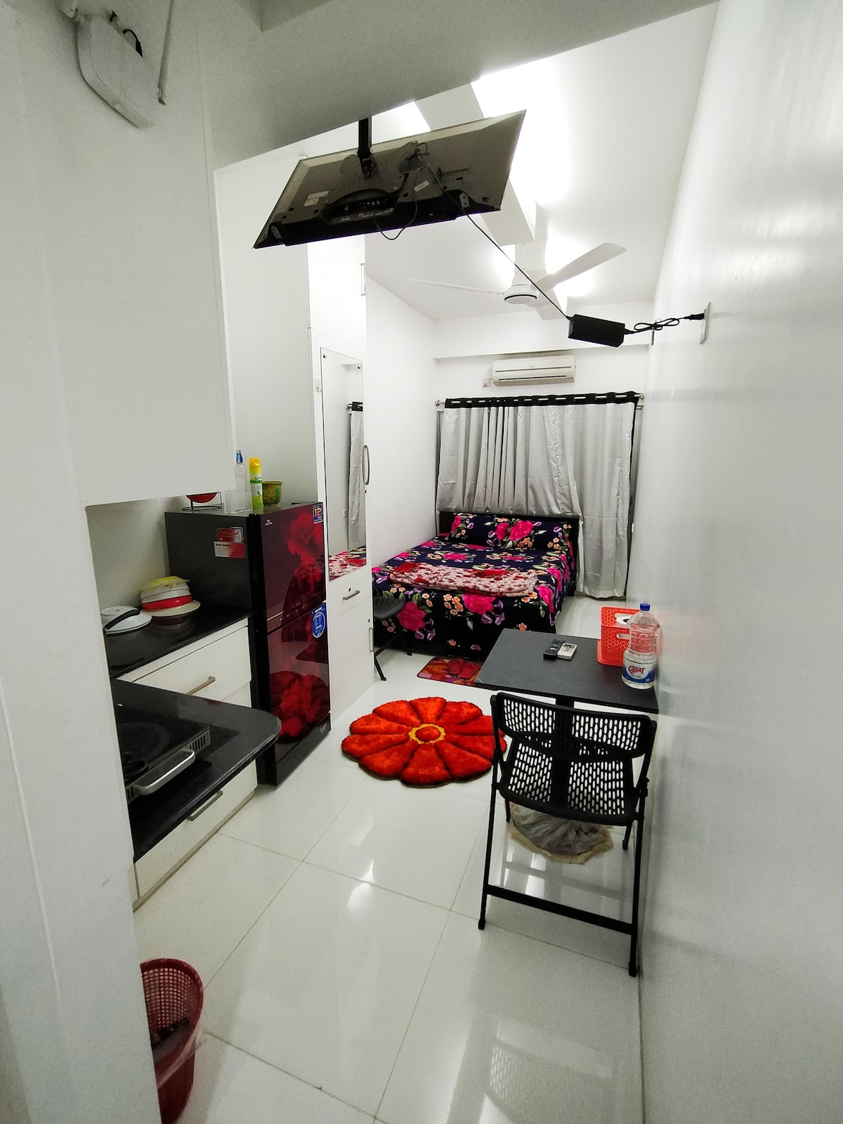 I monolocali sono ora a Dhaka. Si tratta di un appartamento che ha un ingresso privato. La camera è completamente arredata con aria condizionata, frigorifero e smart TV. Cucina a vista con fornello a infrarossi e tutti i servizi di cucina sono disponibili. C'è un piccolo tavolo da pranzo, un balcone e un bagno annesso con una struttura geyser, ecc. Abbiamo incluso mascherine, disinfettante e igienizzazione della stanza.