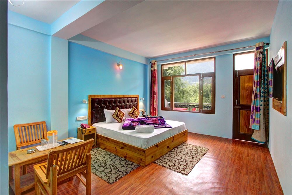 Located at a distance of just 2 kms from Manali Mall Road, this apartment provides a spectacular view of the snowcapped mountains all year round from both the rooms and kitchen. You'll be living surrounded by apple orchards, big walnut and cherry trees in a quiet Himalayan village neighbourhood called Aleo. Major sightseeing points like Old Manali, Hadimba Temple, Vashishta & Jana Waterfall are all within 4-5 kms distance from the property and various modes of transportation are easily available