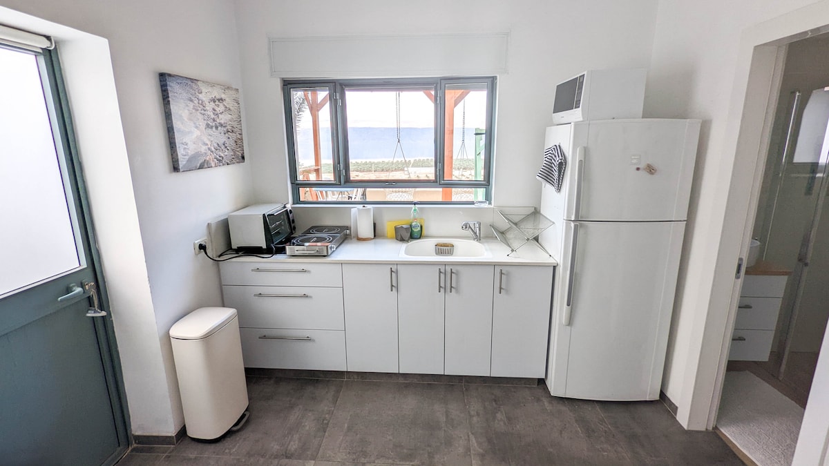 Come and experience the Dead sea and Judean desert in this amazing 2 room 1 Bathroom brand new apartment. Only five minutes away from the near beach, and half an hour away from Ein Gedi and Mesada. Beautiful Ocean view from Main Living room.