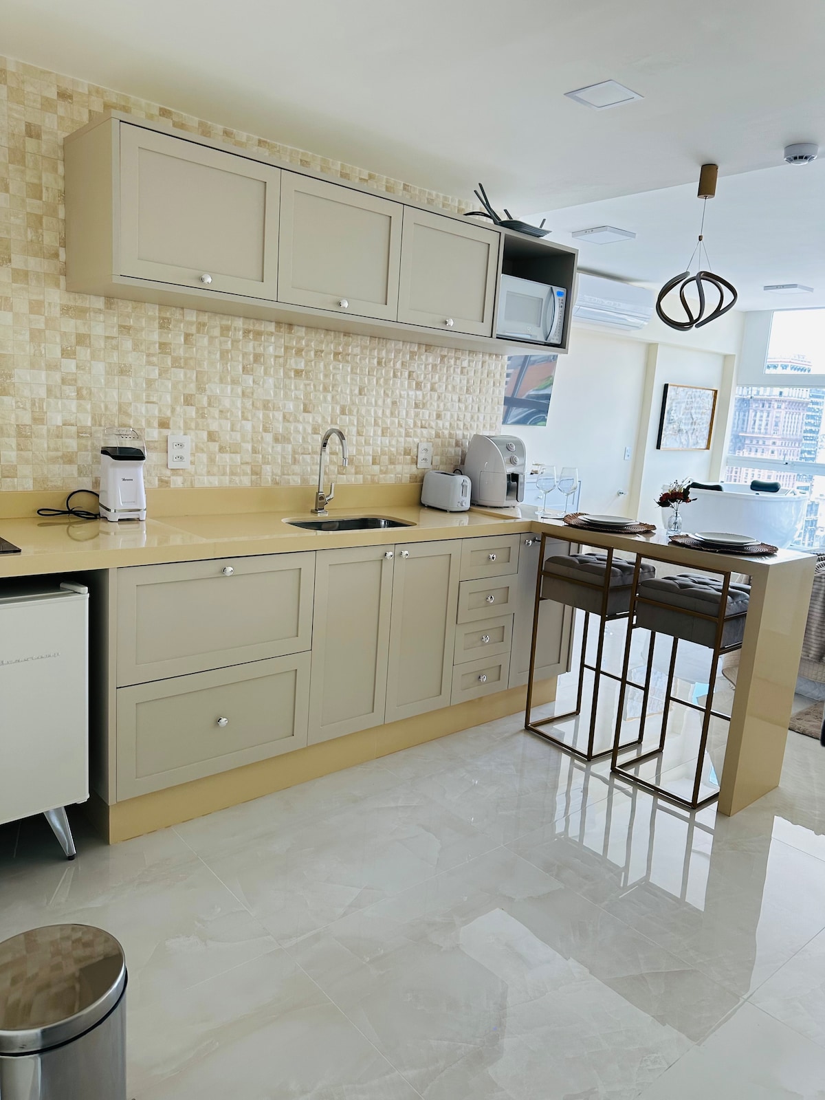 Elegante appartamento di 50 m² situato a Bela Vista, con portiere 24 ore su 24. 2 camere da letto (solo 1 con aria condizionata e letto matrimoniale, la seconda è piuttosto piccola e può essere utilizzata come ufficio, con un divano letto matrimoniale) e 1 bagno. Con una vista mozzafiato da ogni finestra, è un ottimo posto per lavorare e rilassarsi. Il jet-tube privato sul balcone è un posto fantastico per godersi la vista sulla città. Ideale per coppie, professionisti o piccole famiglie in cerca di comfort, comodità e una delle migliori viste della città.