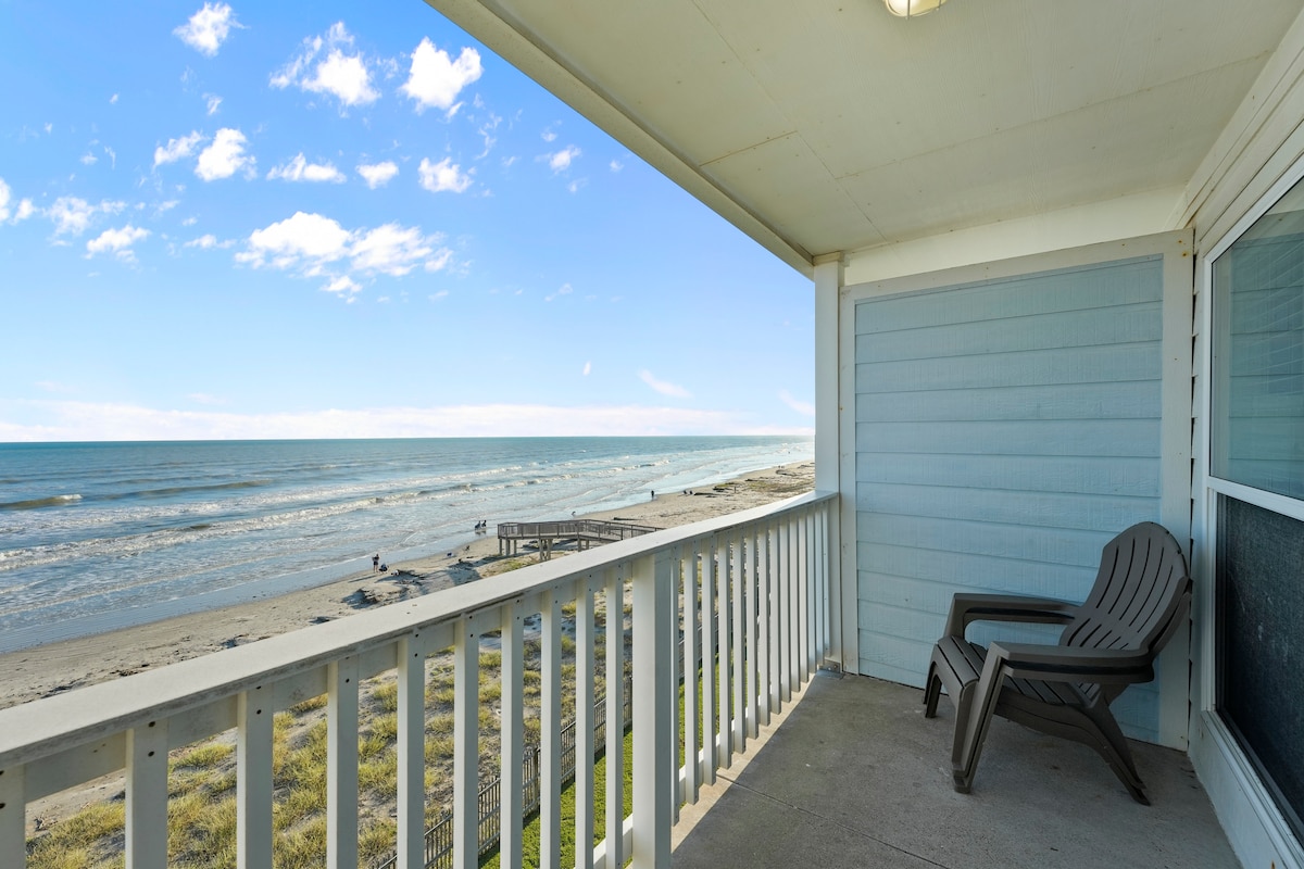 Recentemente ristrutturato - 2 bagni completi e lavatrice/asciugatrice in loco. Ascolta l'oceano dal tuo appartamento sull'ultimo piano sulla spiaggia. Non attraversare la trafficata Seawall Blvd, basta camminare lungo il lungomare di Seascape e sentire i piedi nella sabbia. I servizi del resort includono 2 vasche idromassaggio, piscina riscaldata tutto l'anno, piscina per bambini, altalene rilassanti, griglie a carbone, tavoli da picnic e un ASCENSORE. L'appartamento viene pulito professionalmente tra un ospite e l'altro. Tutti i tappetini da bagno e la biancheria, compresi i piumoni, vengono lavati tra un soggiorno e l'altro.